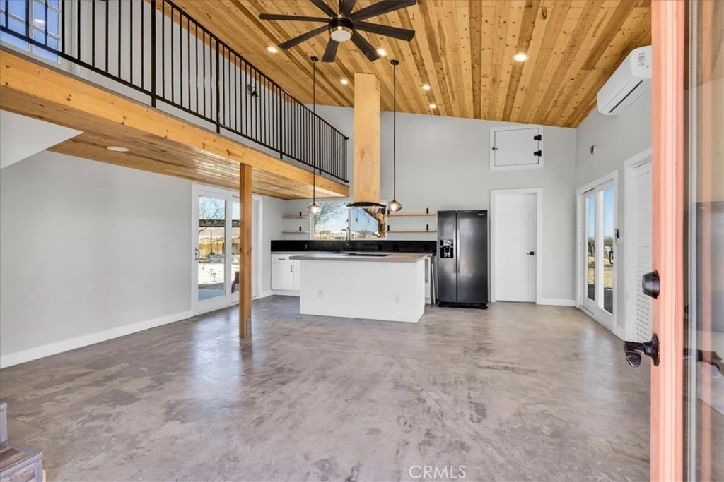 Totally Remodeled Luxury Desert Home! This extraordinary work of art was meticulously designed and renovated using some of the most beautiful finishes you could dream up and is a permitted Short Term Rental! Pulling up to the massive 5 acre lot you'll get a sense of relief as the stresses of the city disappear and you find yourself surrounded by vast open desert landscape and stunning blue skies! As you approach the home you'll be taken back by it's modern charm and gorgeous aesthetic featuring a smooth stucco finish with modern paint scheme. Once inside you won't want to leave as you're greeted by an amazing open concept floor plan with high wood treated ceilings, recessed lighting, modern light fixtures, and an abundance of natural light coming from the dual pane windows, thus creating an open and airy feeling. Polished concrete floors flow throughout this one of a kind property which is ideal for day to day cleaning. The kitchen is an entertainer's dream! Opening up to the living area so you can prepare your favorite meals while still being a part of the action! Fully equipped with custom concrete countertops, brand new cabinets, large black metal sink, tasteful shelving, and stainless steel appliances, you'll want for nothing! The bedroom is well sized for the floor plan and includes recessed lighting, mini split, window with view, and tasteful wardrobe! Stepping into the bathroom you find a beautiful walk in shower, modern vanity, touch screen mirror, claw foot bathtub, and tasteful tiled walls! Enjoy the loft as a reading area, office space, or sitting space! Just off the loft you find a relaxing balcony with a view that goes on for miles! It gets even better! Once back outside, relax under the covered patio taking in a soft desert breeze, or take a dip in the cowboy tub as you gaze at the star filled skies! There is just too much to list with this one so call today before it's gone!