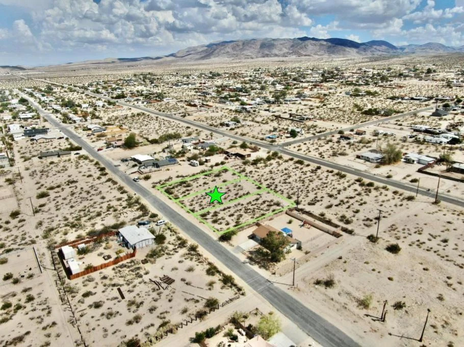 Owner may carry! Turn Key lot with utilities and paved road. 11,100 square foot (quarter acre) lot the trendy Hanson Area neighborhood in 29 Palms! Ideal for a developer or long term investor. The Hanson Area is known for its views. Set on a gentle incline offering northern vistas of the Bullion Mtns. To the west are the boulder studded Little San Bernardino Mtns with Joshua Peak. To the east are the Twentynine Palms Mtns. Quiet neighborhood. Close to the 29 Palms Restaurant and Inn, Theatre 29, and the Tortoise Rock Casino. Just down the road is the 29 Palms gate to the Joshua Tree National Monument. About 3 million tourists visit the park annually. Great vacation area. A few miles to the north is downtown 29 Palms with the new Freedom Mall and all amenities. Celebrities, artists and musicians are now calling 29 Palms home more than ever before. Would be great for a designer modern home or go with a prefab manufactured. Buyer must contact the city for all questions on building and usage. Buyers must contact the utilities agencies for all questions on utilities. APN: 0624-012-18-0000 Address is not a real address and for marketing purposes only. GPS: 34.122244, -116.035248 Don't Wait! Call Now! Additional parcels also for sale APNs: 0624-012-19-0000 & 0624-012-17-0000