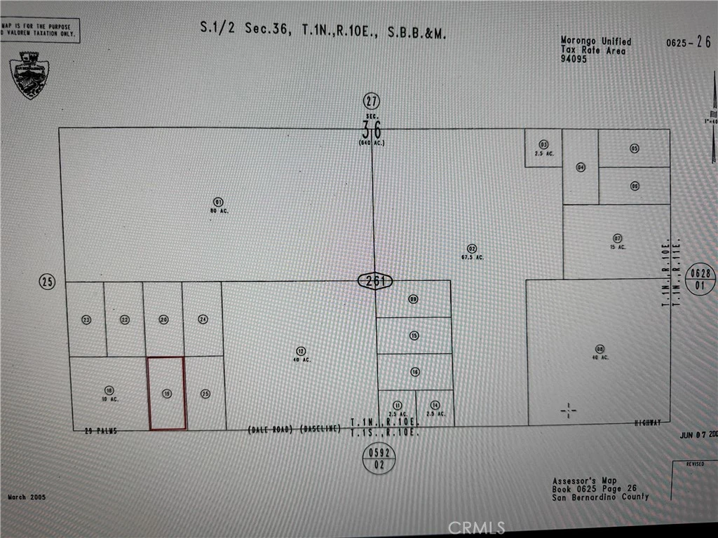 Prime 5-Acre paved Road with 331 feet highway frontage of the 29 Palm Hwy,. This intimate desert paradise with direct access, perfectly positioned just minutes from Joshua Tree National Park’s North Entrance – a hotspot where tourism demand continues to drive land values. This manageable 5-acre gem offers the perfect footprint for any development. Sweeping 360° vistas capture the rugged beauty of the Bullion Mountains; flat, usable topography makes for an easy build. Power is at the street. Enjoy dark sky nights and total serenity without sacrificing convenience to 29 Palms services.