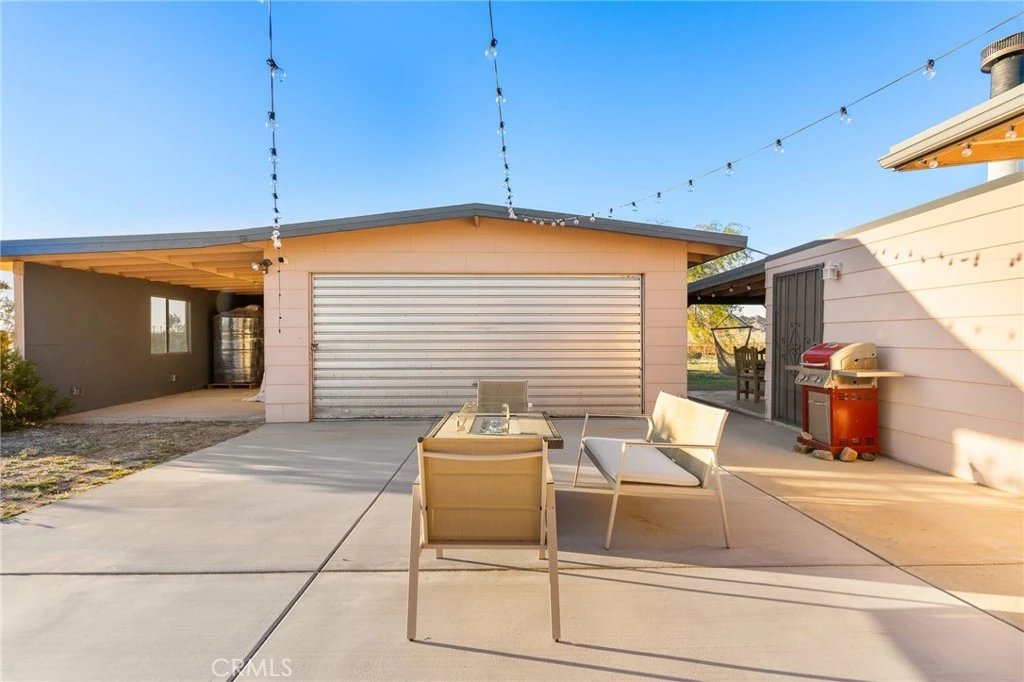 Solar will be paid at the close of Escrow !! Priced for a quick sale!! Perched on 5 scenic acres in Wonder Valley and facing the iconic Godwin Mountains, this approximately 1,400 square foot 3-bedroom, 1-bath home offers space, privacy, and exceptional value—truly one of the best deals in the area. Inside, a second living room functions as a flexible primary bedroom retreat complete with a cozy fireplace, while two additional spacious bedrooms, a huge living room, generous dining area, and a well-appointed kitchen provide comfortable everyday living. A structural beam installation has opened the main living space into an inviting open-plan layout, and mini-split systems are installed throughout the home for efficient year-round comfort. Recent upgrades include a large, fully renovated bathroom spanning the length of the home, completed electrical work above the ceiling, a new exterior water heater to create more interior space, and a new well-water filtration system, with a reverse osmosis system included and ready for connection. Outdoors, enjoy perimeter fencing for privacy from passing headlights, removed interior fencing to enhance property flow, a concrete patio near the two-car garage, front and back porches, a relaxing hot tub, and serene landscaping that creates a peaceful, balanced desert setting.