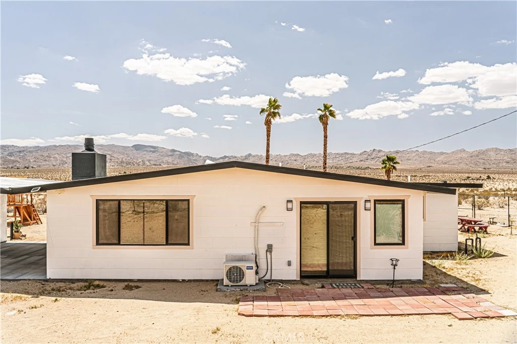 This gorgeous home and casita have been completely remodeled in stunning fashion. The tax rolls say 1966 but the inside is brand new. Enter to spacious great room with beautiful block fireplace. Kitchen is incredible from end to end! Kitchen features include large breakfast bar island and lovely white cabinetry. One wall has floor to ceiling cabinets!. Stainless steel appliances are included. Bedroom is very spacious with sliding door to the exterior. Bathroom features beautiful rock floor shower with sliding glass doors. Casita is small but manages to fit all the comforts of home. There is also a detached garage. This property has a well! House and casita are fenced in chain link to allow the surrounding mountain views to be enjoyed. Located just a couple minutes off paved Lear Road and just minutes from downtown 29 Palms with shopping and restaurants. This property is also just a few minutes drive to Joshua Tree and famous Joshua Tree National Park. You must see this absolute gem to appreciate! Seller will be keeping some of the artwork but this amazing property can be sold completely furnished just less a few items.
