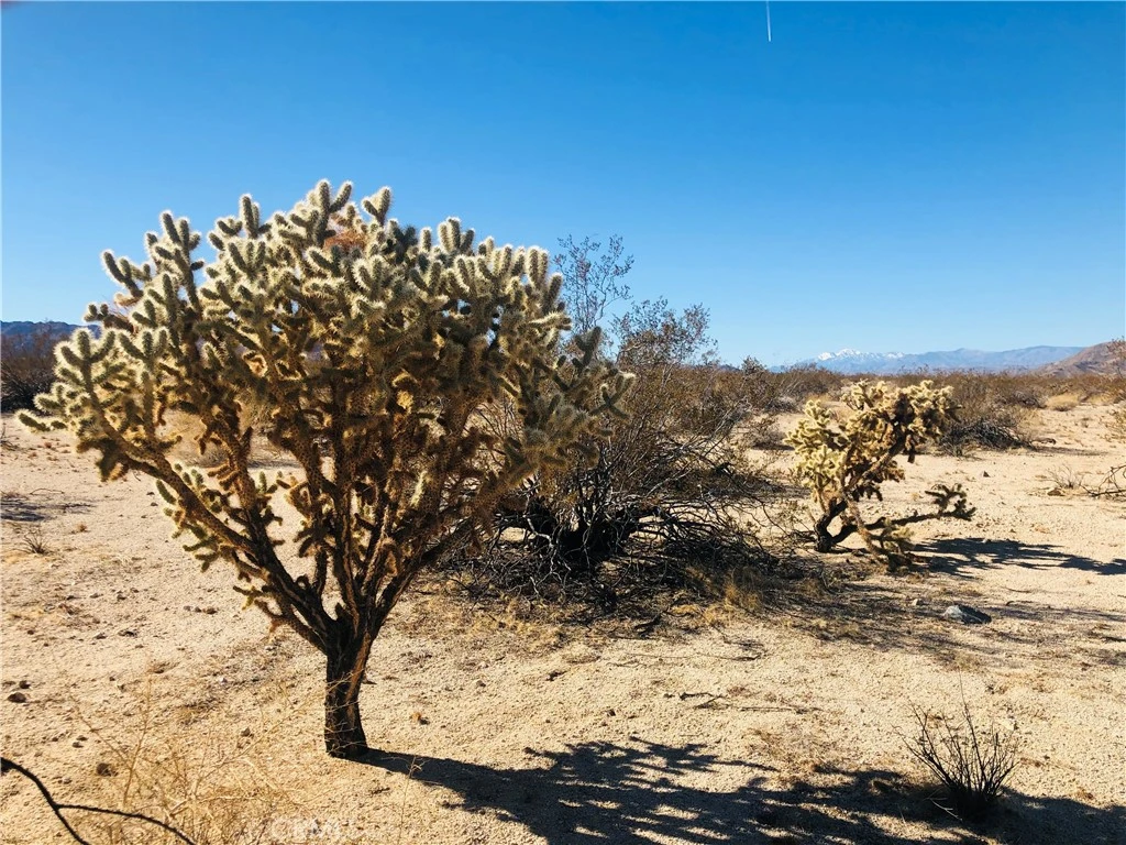 Secluded 5 acres with fantastic views across miles of desert to rocky hills and snow-capped mountains in the distance. Cholla and other cacti scattered throughout. No utilities or direct access by road. Property does not have an assigned address - for listing purposes only. GPS: (34.1448754, -116.1382362) APN: 0613-232-20-0000. Owner May Carry.