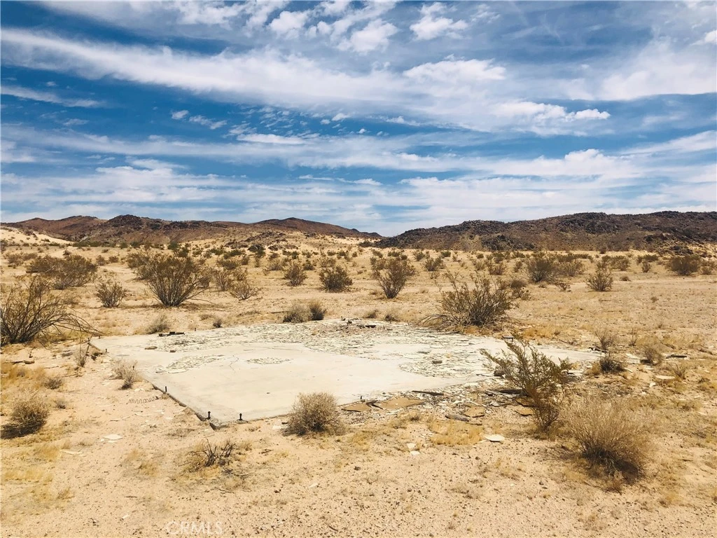 5 acres near the base of hills with endless off-road trails to explore. A perfect location and base camp for off-road enthusiasts. Plenty of privacy and solitude to enjoy the sunsets and night skies filled with stars. Approximate 20" x 24" weathered slab. No Utilities. About 20 minutes from the Joshua Tree National Park Entrance in 29 Palms. Property does not have an assigned address - for listing purposes only. Owner May Carry. GPS: (34.1932530, -115.9593147) APN: 0626-101-04-0000