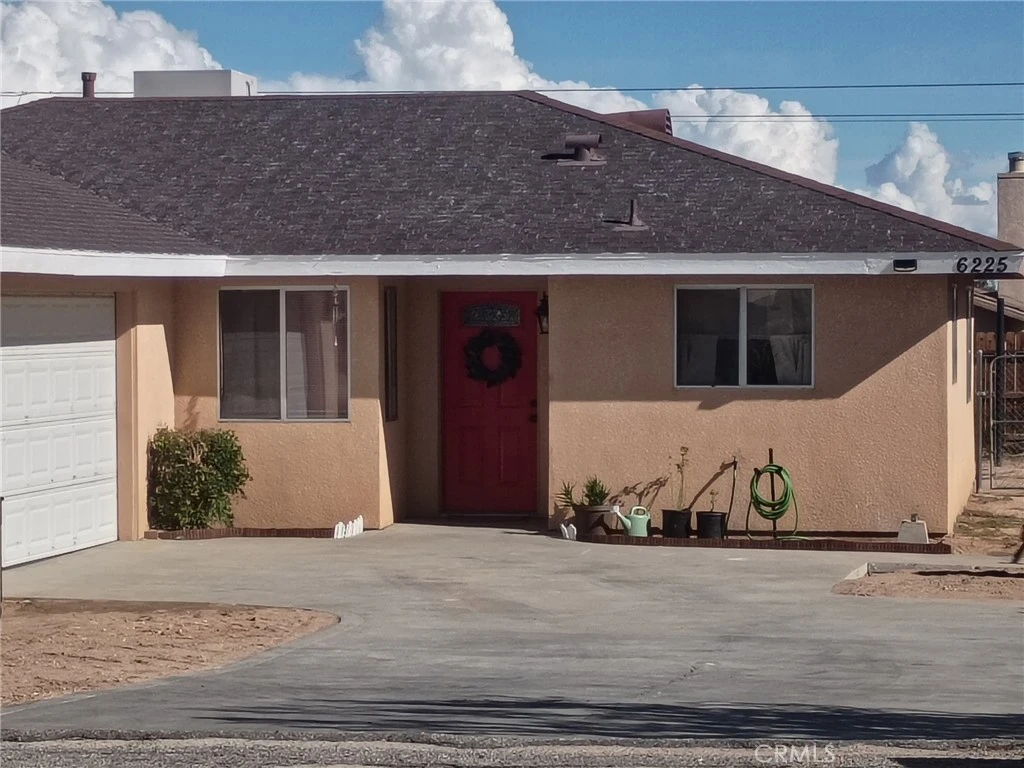 Motivated seller! Don’t miss this beautifully updated 3-bedroom, 2-bath home ideally located just minutes from the Marine Base and the stunning landscapes of Joshua Tree National Park. From the moment you arrive, the inviting covered front porch and elegant leaded-glass entry door set the tone for the stylish, move-in-ready interior. Step inside to a bright and spacious open-concept great room featuring soaring ceilings, abundant natural light, and a seamless flow between the living, dining, and kitchen areas—perfect for both everyday living and entertaining. The kitchen offers classic wood cabinetry, a brand-new GE® 4-burner gas range with vent hood, GE® dishwasher, and a dual-basin stainless steel sink with disposal. Sliding glass doors lead to a private patio, creating the perfect space for outdoor dining or relaxing under the beautiful desert sky. Throughout the home you’ll find newer, high-quality wood-look ceramic tile flooring (no carpet), ceiling fans in every bedroom, and thoughtful upgrades that enhance both comfort and functionality. The spacious primary suite includes a large walk-in closet with recessed lighting and an updated en-suite bathroom with a shower-over-tub. Washer and dryer connections offer both gas and electric options for added convenience. Recent improvements include a brand-new reinforced concrete 1-ton septic tank, a serviced evaporative cooler with a new pump, centrally located natural gas wall heater with digital thermostat, and a fully fenced backyard and side yards. The outdoor space also features mature front landscaping and a picturesque shade tree—perfect for enjoying peaceful desert evenings. The attached two-car garage provides direct home access and includes a new automatic roll-up door plus space for a full-size washer and dryer. With its updated septic system, concrete driveway, natural gas service, and true move-in-ready condition, this home stands out as an exceptional opportunity in the area. Seller is open to buyer concessions. Schedule your showing today and discover all this desert gem has to offer!