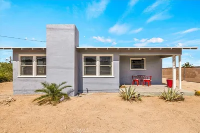 FULLY FURNISHED!! Turnkey desert retreat and successful Airbnb opportunity. Just 9 minutes from the iconic Joshua Tree National Park. This fully furnished home is being sold with all furniture, décor, hot tub, cowboy pool, and hammocks included, allowing the next owner to seamlessly continue operating it as a short-term rental or enjoy it as a personal getaway. Situated on a large lot with ample parking, the property offers beautiful mountain views and plenty of outdoor space to relax under the unbelievable desert sky. The expansive lot also provides room to expand the existing home or build an additional front house, offering great potential for future development or added value. Renovation in 2023 included: new mini splits in both rooms and living room that work perfectly in cooling the house in the summer heat and keeping it warm during the "winter" desert nights, New fans throughout, new flooring, new recessed lighting, bathroom and kitchen all upgraded, new appliances, copper plumbing, new cement slab surrounding the house. 2024: added ambient lighting in the kitchen above and below the cabinets. This is rare chance to own a move-in ready desert escape with income already flowing in and room to grow. Buy it before someone else will! Seller is a licensed real estate agent.