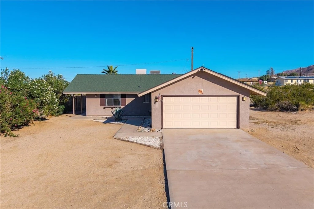 **MOTIVATED SELLER / LOW ASSUMABLE VA INTEREST RATE!** Welcome to 7429 Maude Adams Ave, a beautifully maintained 3 bedroom 2 bath home located in the quiet and desirable Hanson Track neighborhood of 29 Palms (just MINUTES from the Joshua Tree National Park East Entrance)! With close proximity to downtown, schools, eateries, the Tortoise Rock Casino, Marine Corps Base and more, you'll love the convenience and ease this home's prime location offers. As you step inside you'll notice the lovely open-concept living space complete with earth-toned tile flooring, recessed lighting and large east facing windows that let in an abundance of natural light. The chefs-kitchen is anchored with an oversized island with tile countertops, amble cabinet & counter space, custom cabinetry and stainless steel appliances. This home's neutral color palette makes it extremely versatile for any decor and style. Directly adjacent to the kitchen you’ll find the formal dining area, additional cabinetry and the access door that leads to the backyard and pool area. The primary bedroom adorns carpeted flooring, a ceiling fan and a sliding glass door for private patio access while the ensuite bathroom includes a single sink vanity with generous counter space & a pocket door that separates the lavatory & walk-in shower. The two additional bedrooms also include neutral carpeting, ceiling fans and share the aesthetically pleasing hall bathroom - complete with a single sink vanity and a shower/tub combo. Not to mention, this home has dual cooling (AC & Swamp), an attached 2 car garage and leased solar panels to keep cost low year round (buyer to assume lease). Outside you'll be delighted to find a fully fenced yard with wood privacy fencing, a large covered patio, an above-ground pool and plenty of space to entertain or relax around a fire-pit on a starry desert night. Come take a look & let this home's charming allure do the rest, your new desert home, investment property or weekend retreat awaits!