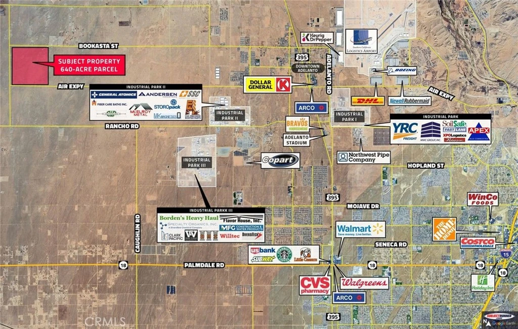 Subject Property consists of 640 +/- Acres, Zoned RL-5 (Rural Living) Check with County for other Possible Zoning Ordinances, Uses Approximately 6.4 Miles from HWY 395, Easy access from El Mirage Road, Parcel is located on Bookasta Street, Mountain View Road to the West and Air Expressway on the South, One Square Mile Parcel. Great Opportunity large parcel close to town and future Development. Only $3,185,000 for 640 Acres Buyer to verify and satisfy themselves to the accuracy of all information.