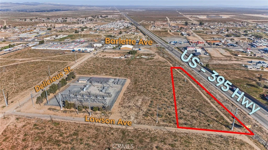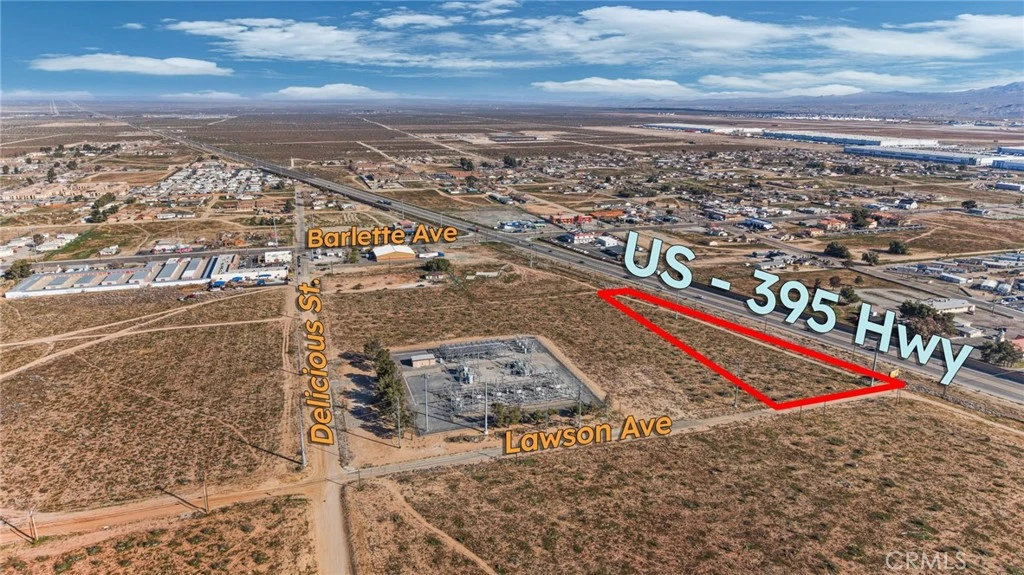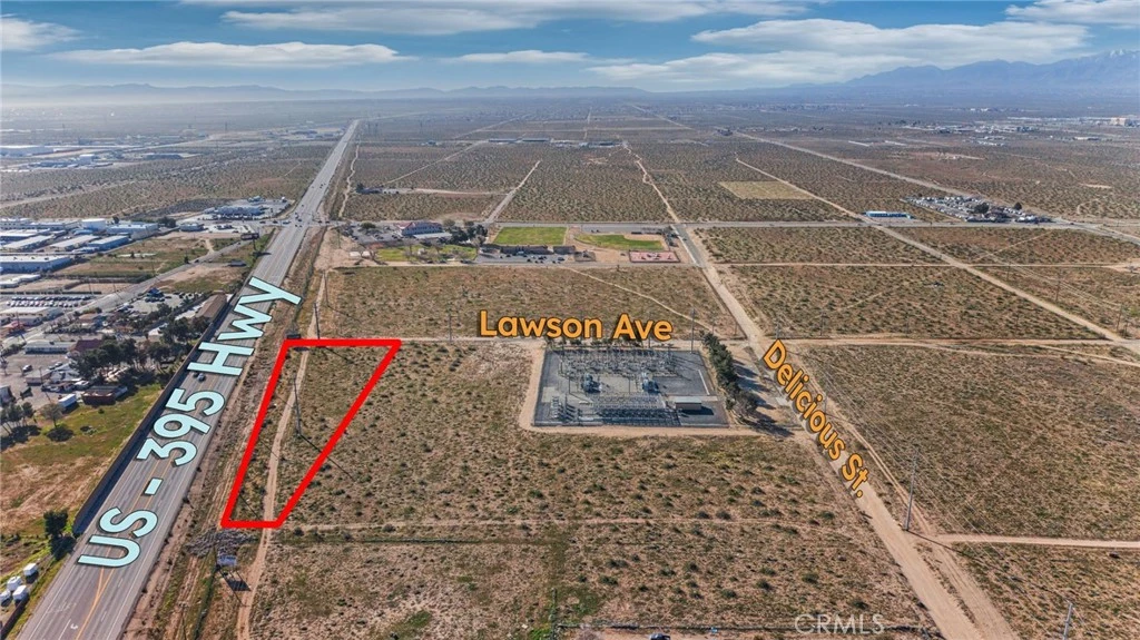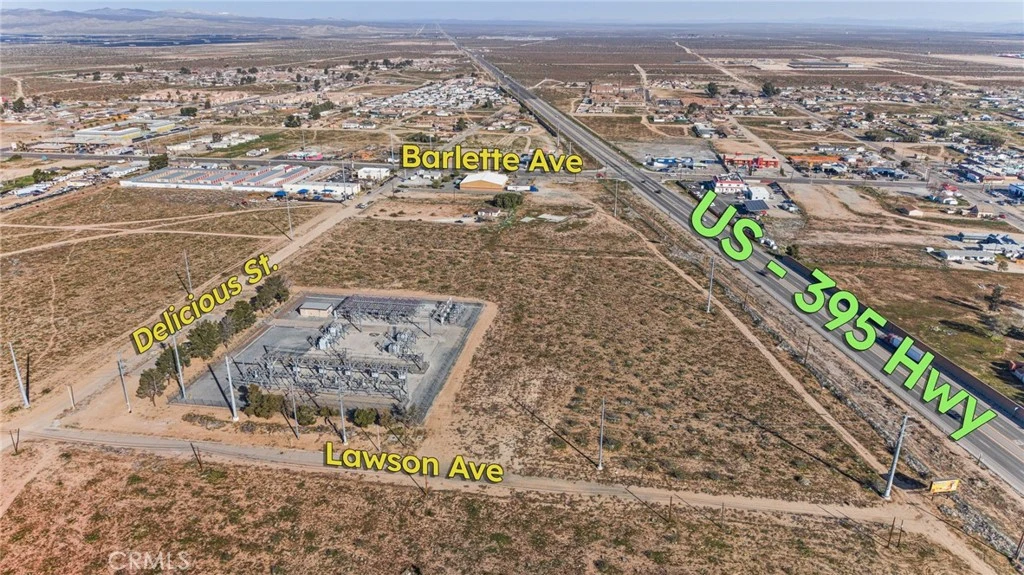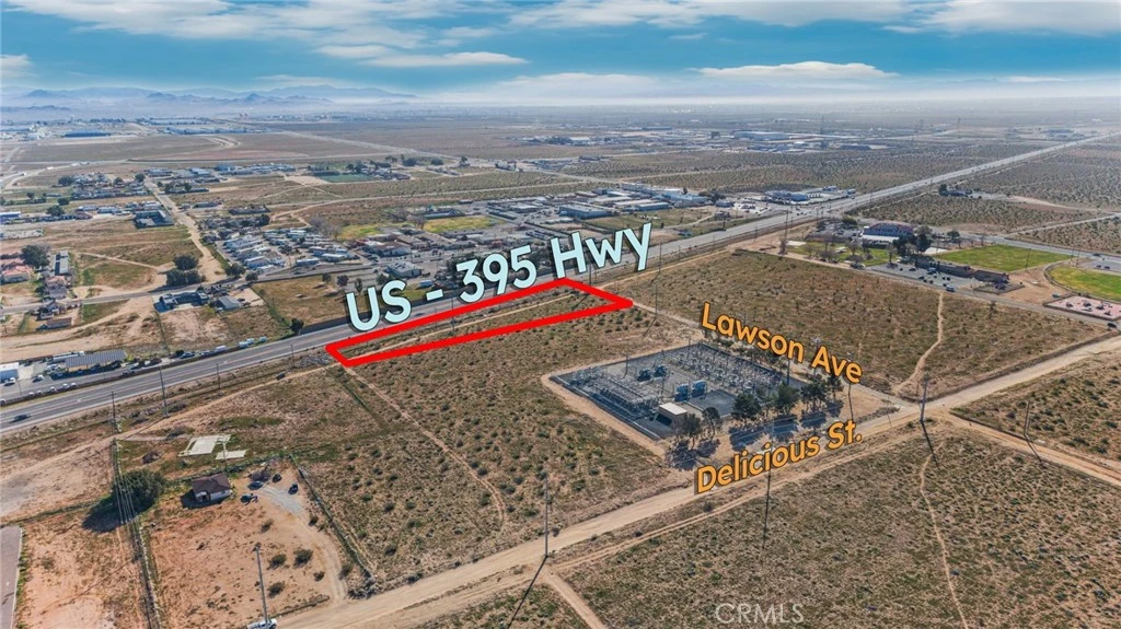 Prime vacant land opportunity in Adelanto, CA, offering excellent potential for commercial, mixed-use, multi-family, or investment development (buyer to verify all zoning, permitted uses, and entitlements). The property is highly visible with strong exposure to Highway 395 traffic and is located near the proposed Caltrans signalized intersection at Lawson Ave and Hwy 395 (buyer to verify status and timing). Adjacent to major utility infrastructure, including Southern California Edison, with water, power, and sewer nearby. Close proximity to the San Bernardino County Sheriff’s Department (Adelanto Station), Adelanto Branch Library, Adelanto City Hall, and a public park, along with surrounding commercial activity, enhances accessibility and appeal. An excellent opportunity for developers or investors seeking visibility, infrastructure access, and growth potential. This parcel is ideally sold together with the adjacent parcel APN? 0459181630000 to maximize development potential, though each lot is available individually.