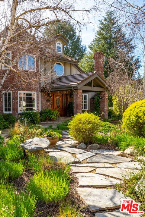 Rarely available in Countryside Estates, this exceptionally maintained English Country estate compound sits on a flat, fully usable acre with unobstructed Santa Monica Mountains views, offering quiet privacy, space, and versatility surrounded by natural beauty while remaining close to everyday conveniences and the coast. The approximately 5,000-square-foot residence offers 6 bedrooms and 7 bathrooms, with spacious, light-filled interiors designed for comfortable everyday living and effortless entertaining. Recent updates include new flooring in the living room and new carpet in the primary suite. Designed with a true estate lifestyle in mind, the property offers a private compound layout featuring a separate guest house and pool house, creating flexibility for family, guests, home offices, creative studios, or private retreats. The grounds enhance the property's lifestyle appeal, featuring a pool, spa, and sports court with a new overhang, set among expansive usable land with beautiful landscaping. Open, unobstructed mountain views and breathtaking sunset exposure create a peaceful setting immersed in nature. Another defining highlight of the property is the 7-car garage compound, making this an outstanding estate for car enthusiasts. The expansive garage space offers exceptional flexibility for prized vehicles while also providing impressive workshop or studio potential, appealing to collectors, hobbyists, entrepreneurs, or creatives seeking room to pursue their passions. Energy features include owned solar (52 panels) and a 26kW Generac Guardian whole-home generator, offering both efficiency and peace of mind. Located in the desirable Countryside/Cornell area near Paramount Ranch, the property offers a rare balance of tranquility and accessibility just minutes to the 101 freeway, shopping and dining in Agoura and Westlake Village, and approximately 15 minutes to the beaches of Malibu. You may never want to leave home at 28850 Countryside Drive. Sellers are open to serious offers.