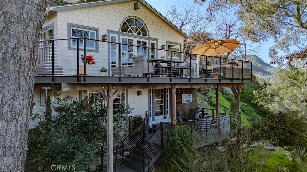 Nestled within the lakeside community of the Santa Monica Mountains, this romantic and serene retreat captures breathtaking deck views overlooking Malibou Lake, Sugarloaf Mountain, and the surrounding ranges. Tucked at the end of a quiet cul-de-sac, the setting offers exceptional privacy, tranquility, and a true connection to nature. Recently updated with a new roof, new flooring, a beautifully remodeled primary bath, new composite decking, and a newly constructed guest yurt, the home blends timeless rustic charm with modern comfort. Light-filled interiors feature soaring cathedral ceilings, rich wood floors, French doors throughout, and an open-concept living and dining area anchored by a charming freestanding wood-burning stove—perfect for cozy evenings and relaxed entertaining. The spacious kitchen is designed for both everyday living and hosting, offering abundant cabinetry, quality finishes, and seamless flow to the main living spaces. The flexible floor plan includes multiple bedrooms and baths, highlighted by a serene primary suite with its newly updated spa-style bath. Nearly every room enjoys captivating lake or mountain views, while expansive wraparound composite decks provide the ideal setting for morning coffee, sunset gatherings, or simply soaking in the peaceful surroundings. A truly special highlight of the property is the new 314 s.f. circular guest yurt, a striking addition that elevates the lifestyle offering. Thoughtfully designed and tucked away for privacy, the yurt is ideal as a guest house, meditation sanctuary, creative studio, wellness retreat, or private escape—an inspiring retreat within a retreat. Outdoors, mature trees, landscaped patios, and lush surroundings enhance the home’s treehouse-like ambiance and natural beauty. Located just minutes from Malibu beaches, scenic hiking trails, restaurants, schools, shopping, and freeway access, this property delivers the rare balance of countryside calm and coastal convenience. Peaceful, artistic, and deeply connected to nature, this lakeside Malibou Lake home presents a unique opportunity to own a thoughtfully improved mountain escape with unforgettable views and versatile living spaces. Come See this rare diamond available for sale.