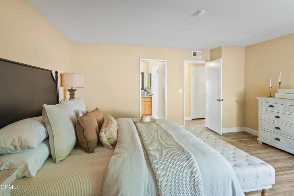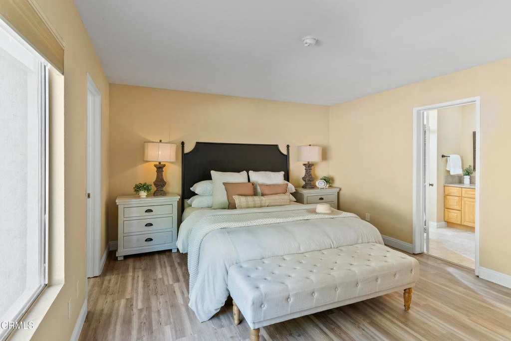 Spacious two-story home located in a quiet neighborhood of Agoura Hills, near parks, shopping, and just a short drive to the beach. Filled with natural light, the home features soaring cathedral ceilings, two skylights, and a fireplace that anchors the main living space.The open-concept kitchen offers generous cabinetry, ample storage, granite countertops, and a functional layout that flows seamlessly into the living and dining areas, ideal for both everyday living and entertaining. Sliding doors open to a private backyard with a wraparound brick patio, garden-ready side yard, and mature fruit trees, including a pomegranate tree. A natural hillside provides afternoon shade, creating a comfortable outdoor setting.Upstairs, two well-sized bedrooms are complemented by a versatile loft overlooking the living room, perfect for a home office, additional living space, or workout area. Downstairs includes two spacious bedrooms, including a primary suite with a large walk-in closet.Bathrooms feature granite finishes, and the overall layout offers flexibility for a variety of living needs.A well-designed home offering space, privacy, and convenience in a desirable location.
