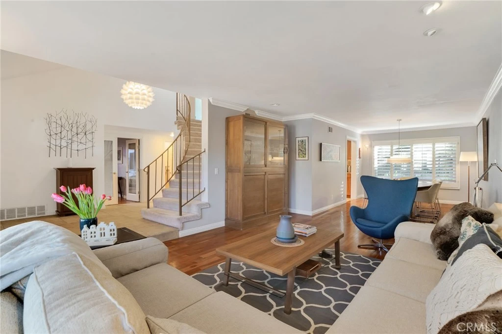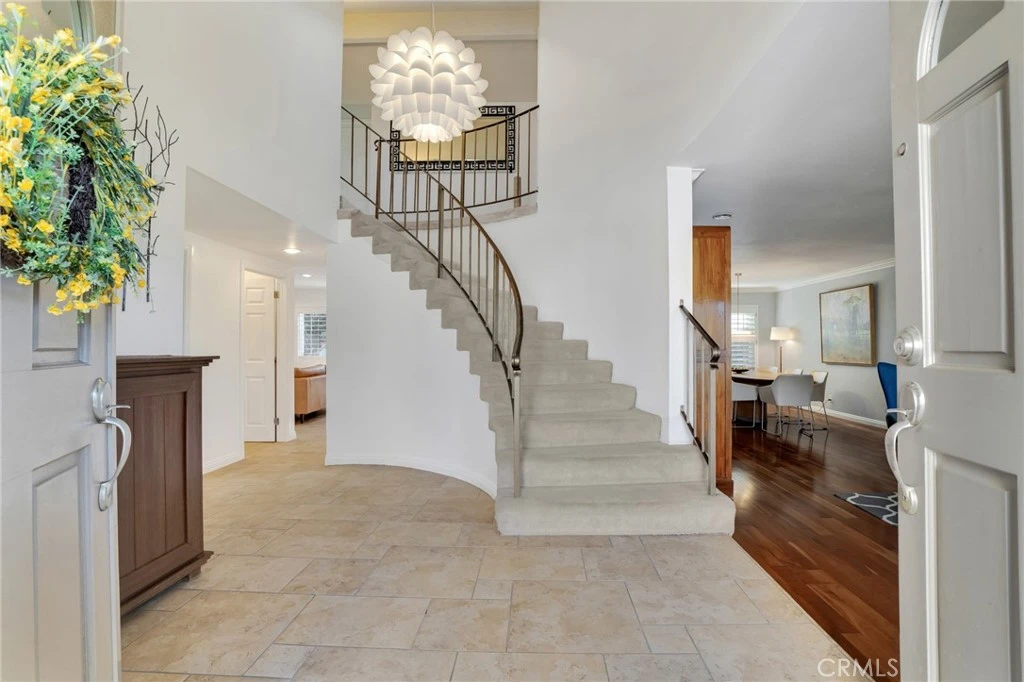 Beautifully maintained Fountainwood home offering 5 bedrooms and 3 bathrooms across 2,347 sq ft, complete with a private pool and an excellent location within the community. Attractive curb appeal welcomes you through a charming courtyard-style entry and double doors. The spacious living room features wood flooring, plantation shutters, and seamless flow into the dining area with views of the backyard. The kitchen feels open and expansive with beautiful cabinetry, abundant storage and a walk-in pantry—perfect for everyday living and entertaining. Just off the kitchen, the cozy den includes a fireplace and built-ins, providing excellent additional storage and a comfortable gathering space. A downstairs bedroom offers double-door entry and a sliding door to the side yard, ideal for guests or multigenerational living. The adjacent bathroom features a walk-in shower. Upstairs, the large primary suite impresses with abundant natural light and a generous walk-in closet. The primary bathroom includes a double vanity and a spacious shower with built-in seating. Three additional bedrooms and a remodeled hall bathroom complete the upper level. The entertainer’s backyard showcases a pool, built-in BBQ, and a modern patio cover that easily opens or closes for year-round enjoyment. Lush greenery surrounds the space, complemented by an area of low-maintenance turf. Additional highlights include solar, a three-car garage (with one bay currently used as an office or bonus room), and portions of the home modified for wheelchair accessibility. Conveniently located near top-rated Las Virgenes schools, parks, hiking trails, and with easy access to Malibu beaches.
