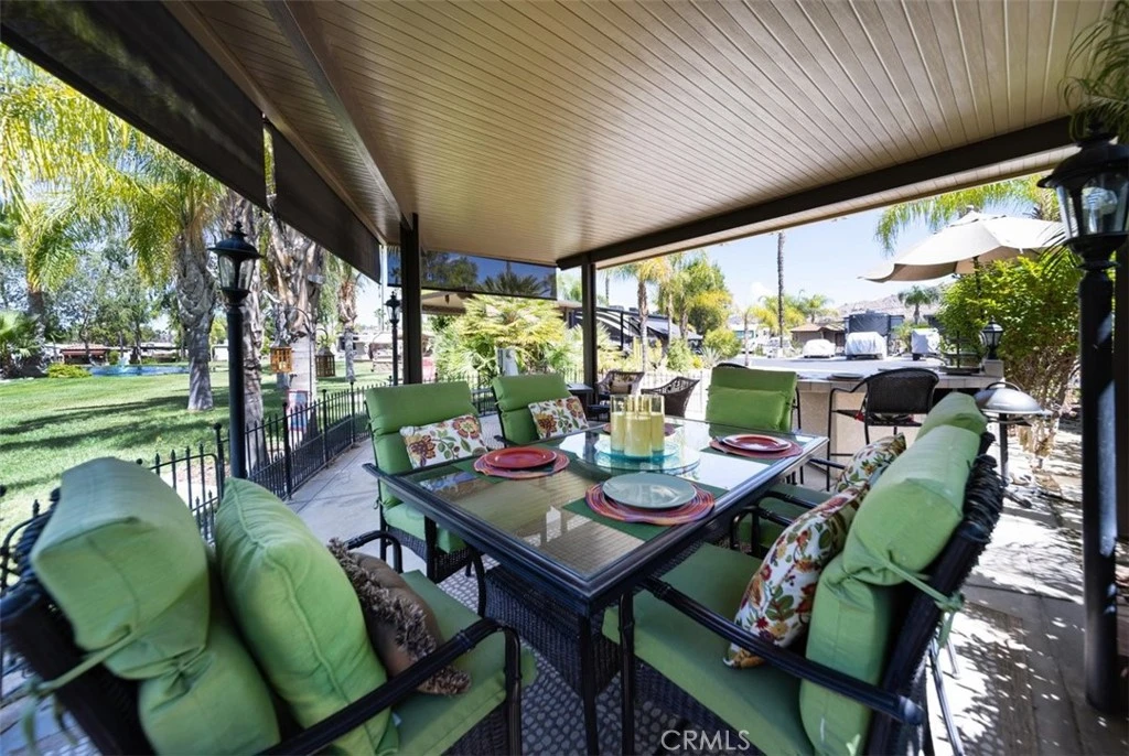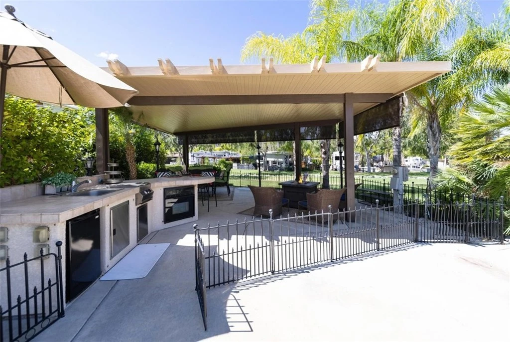 Welcome to Rancho California RV & Golf Resort *Site 42* This beautifully developed site is your own private oasis with a stream and water pond feature directly beyond the site in a park like setting with surrounding mountain views! Spacious alumawood patio cover with screens provides the perfect space for the RV Resort Lifestyle with dining, BBQ/kitchen featuring refrigerator, oven/cooktop, sink and sitting area with TV while soaking in the views. The site is fenced for pets and includes spacious parking for not only your RV but for golf cart and vehicles. Privacy shrubs on both sides of the site offer additional privacy. This truly park like setting is magical, peaceful and relaxing! Rancho California RV Resort provides amenities such as a 14 hole Executive PAR 3 Golf Course (no fees for owners), 5 Pools/Jacuzzis, Tennis courts, Pickleball courts, Dog park, Club house, hiking trails, Horseshoe lawn, onsite grocery market and restaurant. The resort is guard gated with no age restrictions. Monthly HOA fee includes "unlimited" use of the golf course, amenities, trash pickup at lot, water/sewer and common area maintenance. Financing is available!