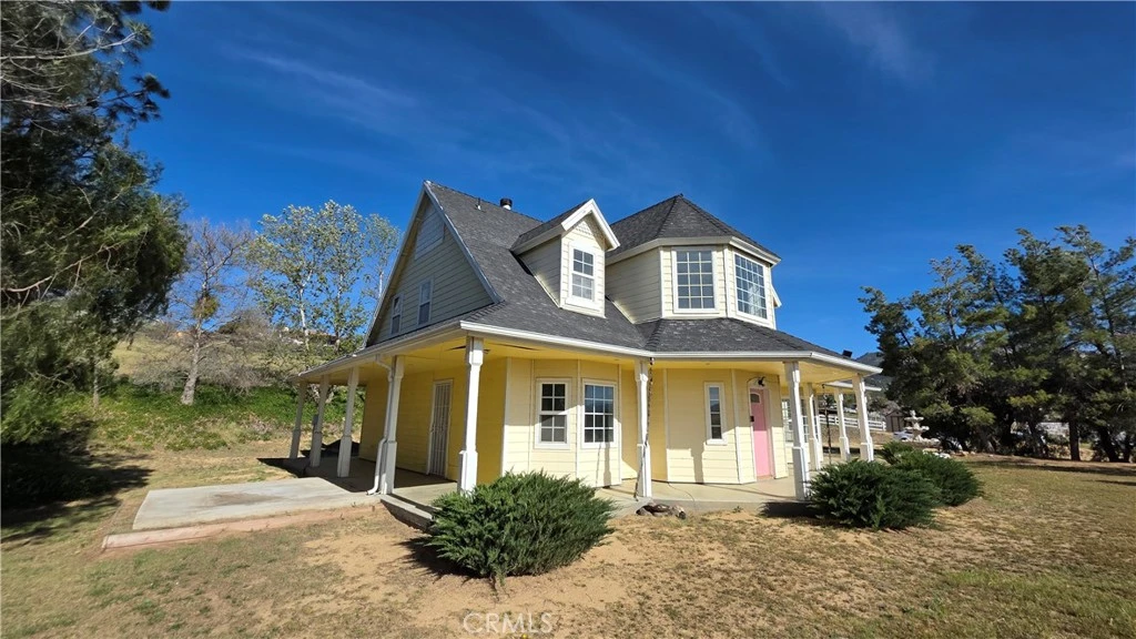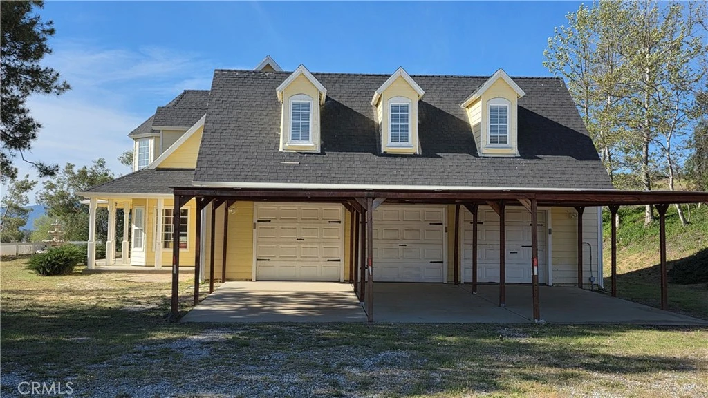 Cape Cod inspired home with 2 ensuite bedrooms with two and a half baths, a downstairs office, upstairs loft and an additional room (permits unknown) that can be used as a bedroom. The home has a partial wrap around porch, with a pad and water/electrical set up for a spa, fully paid solar with a back up battery, all on 2.65 acres, that is fully fenced (condition unknown). Home also has vaulted ceilings, a family room with a fireplace, mountain and peek-a-boo views of the lake. The 3-car garage also has attached 3 carport covered spaces. Home is located approximately 30 minutes from Temecula including its wineries, shopping centers, and restaurants. The Lake Riverside Estates community offers many amentities: Airstrip, controlled access, fishinglake, equestrian center, pool, picnic cabanas, playgrounds, sports courts, trail heads. **All buyers, agents, brokers MUST verify all information for accuracy and are strongly advised to complete ALL due diligence. Listing Broker/Seller makes no representations or warranties, express or implied, with respect to the accuracy or completeness of information provided on MLS and its syndications and will have no liability with respect to its use or reliance. This information is not a substitute for inspections provided by licensed professionals. This is a bank-owned property and the seller has never occupied. The property is being sold in its current AS-IS condition.