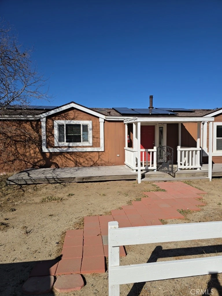 This charming manufactured home offers 3 bedrooms, 2 bathrooms, and 1,440 sq. ft. of thoughtfully designed living space on a peaceful 4.22-acre lot. Horse property, Seamlessly blending comfort, modern amenities, and natural beauty, this property serves as the perfect country retreat. The open-concept floor plan features a spacious kitchen with a large island, stainless steel appliances, recessed lighting, and ample cabinetry for all your storage needs. The bathrooms are designed with dual sinks, adding a touch of luxury, while the cozy fireplace and expansive wrap-around Enjoy stunning mountain views, host outdoor gatherings around the wood-burning stove, and make use of the additional storage space provided by the shed. Ceiling fans and spacious closets in each bedroom ensure comfort and organization throughout the home. This property operates on a septic system, well water, propane gas, and is equipped with solar panels, offering energy efficiency and year-round comfort.