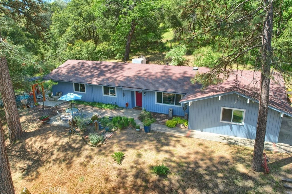 What a treasure tucked on 2.46+/- beautiful acres! This remodeled 3 bedroom, 2 bath home has a large front patio to relax and enjoy the sounds of nature. An open floor plan includes a spacious living area, dining/family area with a central kitchen. The family room had a woodstove and a slider to the back patio. The large kitchen has a custom breakfast bar top, granite counter tops, propane range, dishwasher, tile backsplash recessed and drop lighting with the laundry area conveniently close and the back door. The hallway leads to 2 guest bedrooms, guest bath with beautiful tiled vanity and a bathtub. The primary bedroom has a private slider to the back patio, ceiling fan, walk-in closet, open vanity area with privacy toilet and shower. Several charming patio areas offer a different view from each. An attached 2 car garage has easy access to the interior with access through the family room. The beautiful property has towering Pines, large Oaks, a seasonal creek and distant mountain views. The owners' lovingly maintained and remodeled this beauty and now it can be yours! Add this gem of a home to your viewing list today!