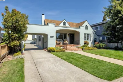 Enjoy the beauty of this majestic 4-bedroom, Alameda Queen Anne in a park-like setting. This fresh, 3000 sq. ft. light-filled home, sits on a large 7,500 sq. ft. lot and has a valuable 3-bedroom and 1-bath attached unit with a private courtyard entrance. Surrounded by lush lawns and classic terra cotta tile, it has 5 off street parking spaces and a long driveway to the rear garage with space for RV parking and an accessible full-bath The main home retains many original features with impressive soaring ceilings, pocket doors, gingerbread, and more. It features a welcoming formal entry and living room, a sought-after family room, a dining room off the kitchen, and a convenient half-bath. The modern kitchen echoes the architecture of the original home and is designed to be multi-purpose. It is equipped with five workstations, a walk-in pantry, and a laundry room. Amenities include a 6-burner Thermador gas cooktop with a pot filler, built-in oven, dishwasher, large capacity refrigerator, and a center island with an under-counter refrigerator. Picture windows offer an expansive view of the backyard. The second floor boasts 4 bedrooms and a delightful bathroom with a walk-in shower and a claw foot soaking tub. Additionally, there is approx. 660 sq. ft. of useful attic space.
