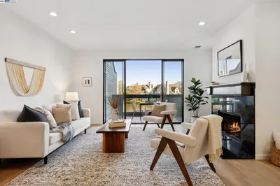 This stylish 3-bedroom, 3.5-bath townhouse at Alameda Point offers thoughtfully curated upgrades and contemporary design throughout. Soaring 10’ ceilings, oversized windows, and abundant natural light enhance every level. The entry floor includes a private bedroom with full bath, a flexible bonus space ideal for a guest suite or home office, a coat closet, and a spacious side-by-side 2-car garage. The main level showcases a gourmet kitchen with premium appliances and a center island, seamlessly connecting to the dining and living areas. A sleek bar area, private balcony, and guest half bath make this space perfect for entertaining or relaxing. Upstairs, the expansive primary suite features a walk-in closet and a modern en-suite bath with dual vanities. A secondary bedroom suite and convenient laundry closet complete the top floor. Located just moments from the Seaplane Lagoon Promenade, Alameda Ferry, Bohol Circle Immigrant Park, Target, Safeway, and local dining. Enjoy easy access to BART shuttles, water taxi to Jack London Square, and the vibrant breweries and tasting rooms along Spirits Alley. A rare opportunity to own a beautifully upgraded home in a prime waterfront setting!