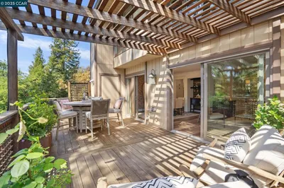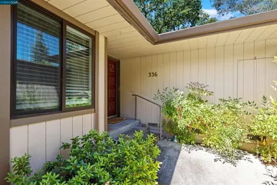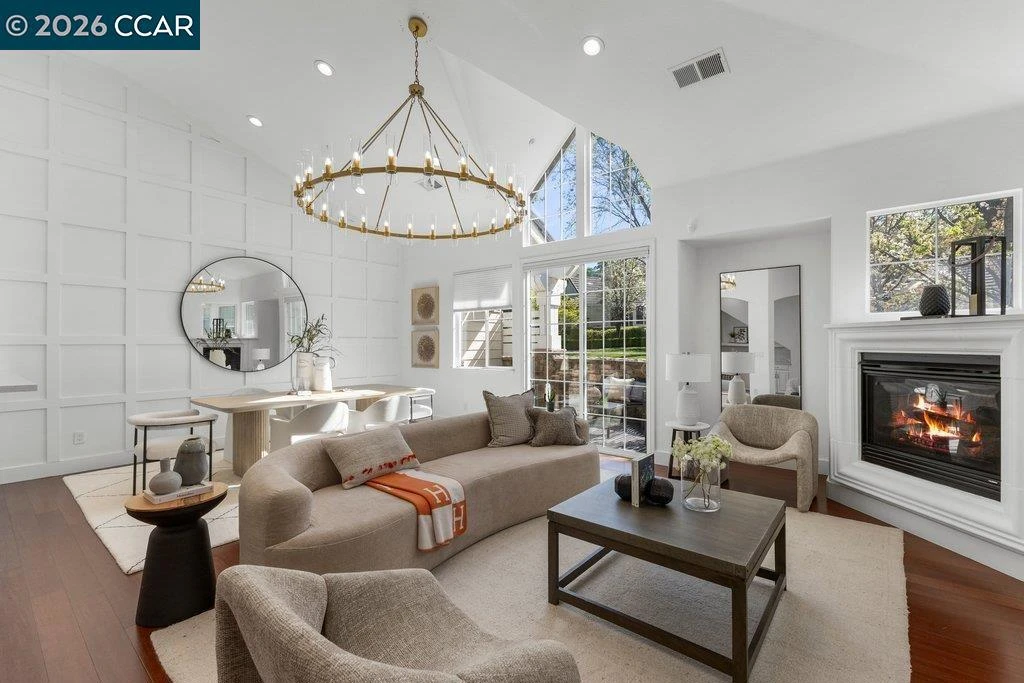 The most elevated, updated & turnkey home in this sought-after community! Located at the end of the court! VAULTED ceilings, LIGHT and BRIGHT throughout with an open floorplan w/thoughtful updates, bamboo flooring, on-trend finishes, statement light fixtures, recessed lighting, and a designer feature wall! Beautifully updated kitchen opens seamlessly to the main living areas and features a center island, slab counters, stainless steel appliances, cooktop, breakfast bar, and abundant cabinetry. Lives like a single-family, primarily single-story home w/main-level bedrooms, inside laundry, and a two-car attached garage w/overhead storage. Spacious upstairs 4th bedroom offers ideal flexibility for guests, a home office, gym, or additional living space. Spacious living and dining areas with soaring ceilings, a fireplace, and direct access to the private patio. The primary suite features its own fireplace, large walk-in closet w/built-ins, and a beautifully updated bathroom w/dual vanity and elegant stone walls and flooring. Private patio overlooking a beautiful, park-like common area w/expansive lawn and walkways. Moments from Iron Horse Trail and Sugarloaf open space and trails, shopping, dining, and all that Alamo has to offer. NO stairs to entry, primary bedroom, or primary rooms.
