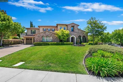 This custom Westside Alamo estate sits on a flat half-acre showcasing resort-inspired grounds and seamless indoor-outdoor living. The private backyard feels like a boutique resort with a sparkling pool and spa, expansive entertaining deck, outdoor kitchen, fire pit, fountain, sport court and a charming cabana with a full bath—perfect for gatherings or peaceful evenings at home. The residence offers 5 spacious bedrooms and 5.5 baths, including a main-level en-suite ideal for guests, plus an executive office. A beautifully appointed gourmet kitchen with high-end stainless appliances, stone counters, and crisp white cabinetry opens to the inviting family room with a fireplace and deck access. Elegant living and dining spaces, soaring ceilings, and extensive hardwood floors elevate the main level. Upstairs, the luxurious primary retreat features a sitting area, fireplace, and dual walk-in closets. All bedrooms are oversized and en-suite. Fresh finishes and updated lighting are found throughout the home. Ideally located minutes to BART, freeway access, Iron Horse Trail, and top-rated schools.