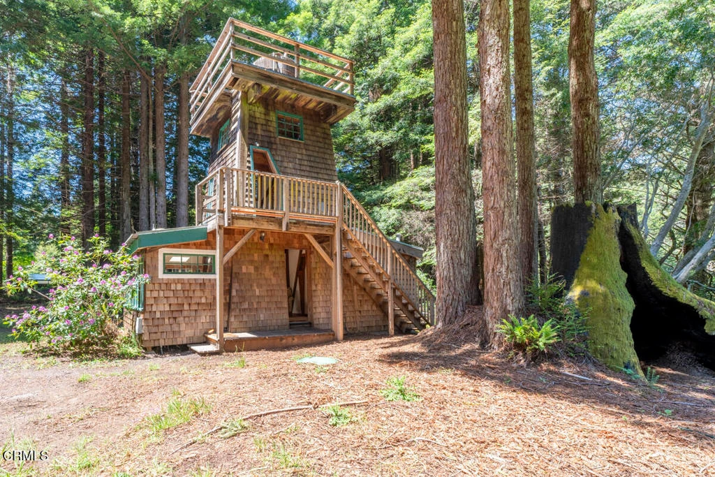 The Water Tower Farm - A Storybook Setting on 4 Acres of Country QuietA blend of redwoods and open meadows, this unique property offers a peaceful retreat with a touch of magic. The four-acre parcel provides generous space for gardens, fruit trees, or a few farm animals. During the rainy season, a vernal pond appears, attracting birds and wildlife and adding to the land's natural charm. The setting feels secluded and serene. At night, the stars shine brightly in the clear country sky, and the air remains cool and fresh, thanks to the nearby ocean.The main home of 1140 sf, features architecturally unique, swooping lines, along with two bedrooms and one bathroom. Warm wood accents throughout make the space feel both comfortable and inviting. Nearby, the picturesque water tower house offers a delightful surprise and an additional 455+sf of living space. On the main level, there is a sitting area, kitchenette, bathroom, and sleeping alcove. The next level includes a flexible space that could serve as a bedroom, studio, or reading room. Above that, a ladder leads to a lofted bed area tucked beneath the rafters.The land is level and accessible, ready for your vision to take shape. If you are seeking a small homestead, a weekend escape, or a home that feels like it stepped out of a storybook, this property welcomes your imagination.