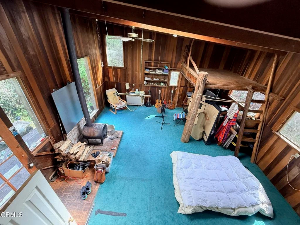 Summer of 1969 handcrafted home in built out of mostly redwood, a peaceful haven in a quiet corner on 2 acres of privacy. Open living room with high ceilings and a built in loft and wood stove. Wood walls throughout, the kitchen and dining room are connected with another wood stove. Upstairs are two bedrooms with forest views and redwood walls. A detached studio needs work, and has the potential to be a charming haven retreat with mismatched windows and a loft. Fruit trees, a gardenia tree, and camelias surround a garden area ready for digging in and planting a vegetable garden. Near to beaches, trails, a market and hiking trails.