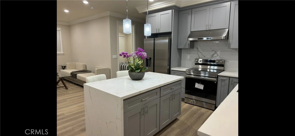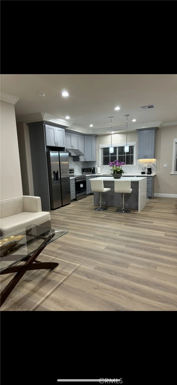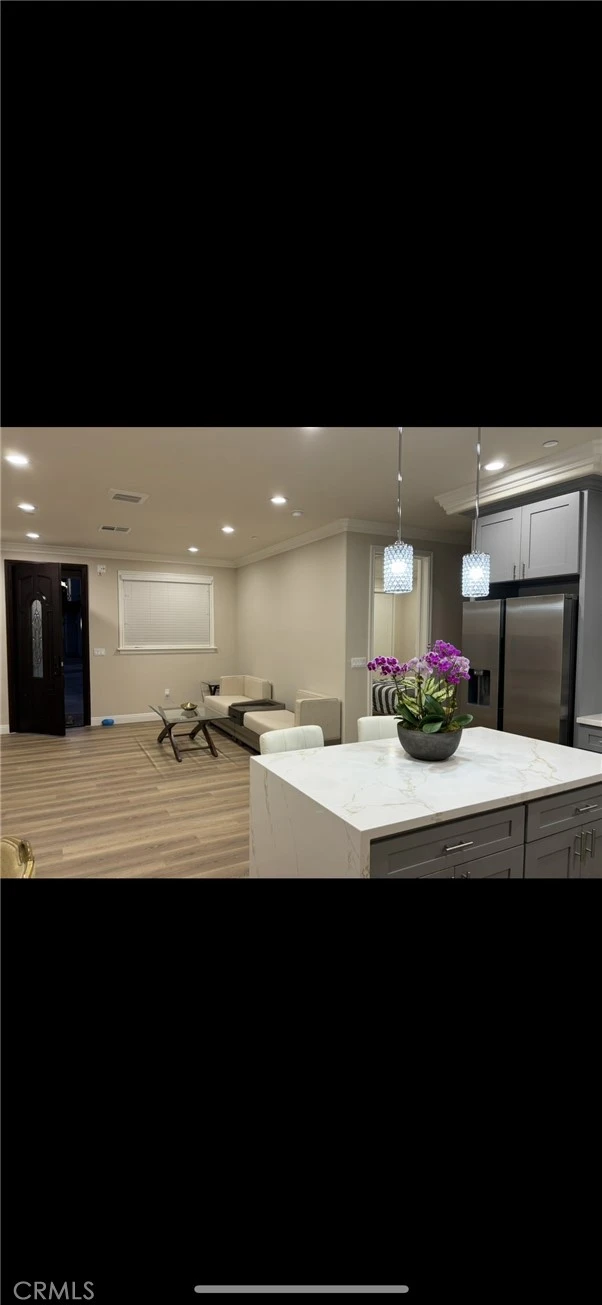 This stunning, newly constructed & FULLY FURNISHED 3-bedroom, 2-bath, offering the kind of space, privacy, and high-end finished custom home. This house is located in a perfect 10 Rated Mark Keppel High School. The open-concept floor plan was thoughtfully designed to balance both elegance and comfort. The chef-inspired kitchen is outfitted with stainless steel appliances and expansive island.