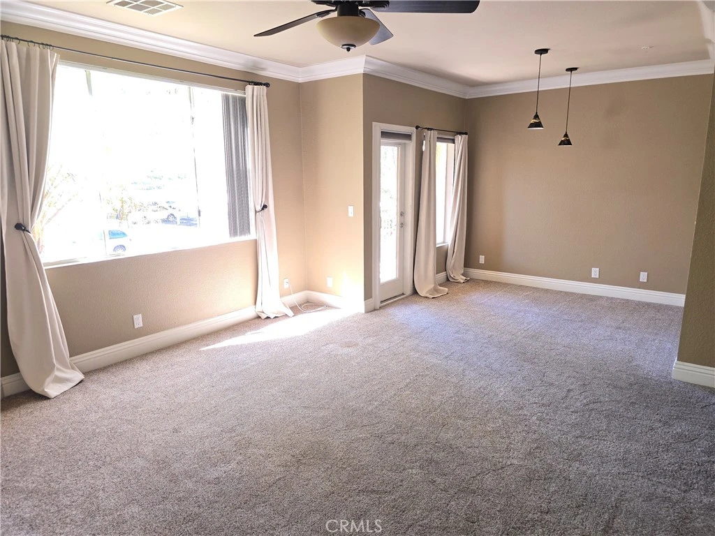 Beautiful 2nd floor view condo in Canyon Point Community. Approximately 792 sq. ft., 1 bedroom, 1 bathroom, full size laundry, open floor plan. The kitchen opens to the large living room with its romantic stone fireplace and scenic views. The living room flows right into the dining room with more views and custom pendant lighting and built in cabinets. The bedroom is large with views. The bedroom also has a large walk-in closet with custom closet organizers. The long patio spans the living room and bedroom. The bathroom is oversized and fully remodeled. The kitchen has granite slab counter tops, stainless refrigerator, stainless oven and microwave. The kitchen also has dishwasher, pantry with washer and dryer in a separate room. This home also features A/C, high ceilings, crown moldings, plush carpet, recessed lighting, ceiling fans in the bedroom and living room. This home comes with one assigned parking space. The community has a pool, spa, clubhouse, gym and many local hiking paths. We are located near Soka University and the 73.