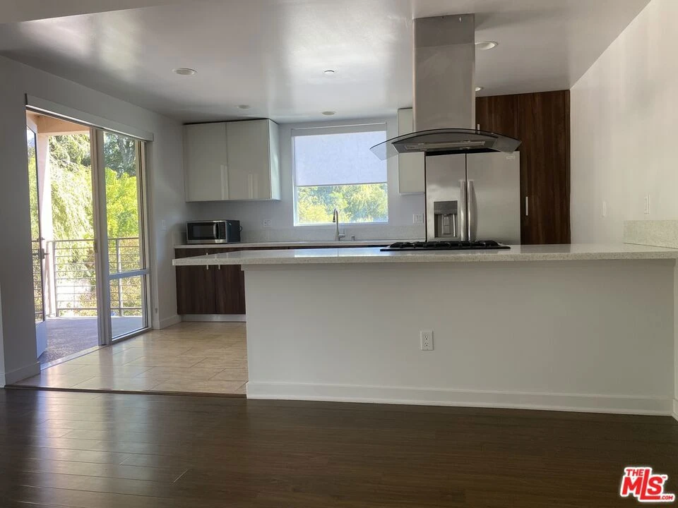 Open floor plan, high ceilings, hardwood floors, and central heat and air. The kitchen is open to the living room with energy-star appliances, including a microwave, contemporary custom European cabinetry, and quartz countertops in the kitchen and bathrooms. Stack washer and dryer located in the hall. Guest bath with large shower and seat. Large main bedroom with custom design walk-in closet, en-suite bath with double vanity sinks, tub shower combination, and private balcony. Trash and water included. No smoking. No pets. Public records show the unit size as 1,240 SF but the builder's record shows 1,315 SF. Newer quality construction, contemporary, single level 2 bedroom 2 bath apartment located on the second floor, with elevator access. Floor-to-ceiling windows facing north/east, flood the room with light and nature scenery. Beautiful two balconies off the kitchen and another in the master bedroom. Include a private storage room on # the 3rd floor, elevator access, a secure lobby, and two marked parking spaces in a subterranean garage. Located just north of Pasadena, within two and a half miles of the 210 freeway. Near San Gabriel foothills with convenient access to walking, hiking, and biking trails.