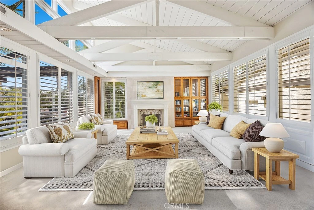 Tucked deep within a serene cul-de-sac in the prestigious Peralta Hills enclave, this privately gated single-story estate presents a rare combination of sophistication, seclusion, and expansive living. A grand circular drive ushers you through the gates, providing ample parking—perfect for hosting gatherings and special occasions with ease. Step through the elegant leaded glass doors and into an open, light-filled interior highlighted by soaring open-beam ceilings and skylights that bathe the home in natural light. The spacious layout unfolds gracefully, offering a seamless blend of style and comfort. This custom-designed residence features seven generously sized bedrooms, most with their own en-suite baths—providing luxurious accommodations for both family and overnight guests. Every room offers abundant space, with an inviting formal living and dining area framed by classic plantation shutters and tranquil views of both the front and rear grounds. The gourmet granite kitchen is a chef’s dream, equipped with high-end appliances, multiple refrigerators, and double ovens to support effortless entertaining. An expansive great room centers around a custom two-sided fireplace, creating a warm and welcoming ambiance. Just beyond, a versatile game room or secondary family area offers additional space for relaxation or recreation. The stunning primary suite is a private sanctuary, complete with a spa-inspired bath filled with natural light, a luxurious soaking tub, and a spacious walk-in shower. Step outside to your own resort-style oasis, featuring a sunlit patio, sparkling pool and spa, sport court, and wide open lawns—ideal for play, entertaining, or quiet contemplation. This remarkable estate is a rare gem in one of Anaheim Hills' most sought-after neighborhoods—truly a one-of-a-kind offering.