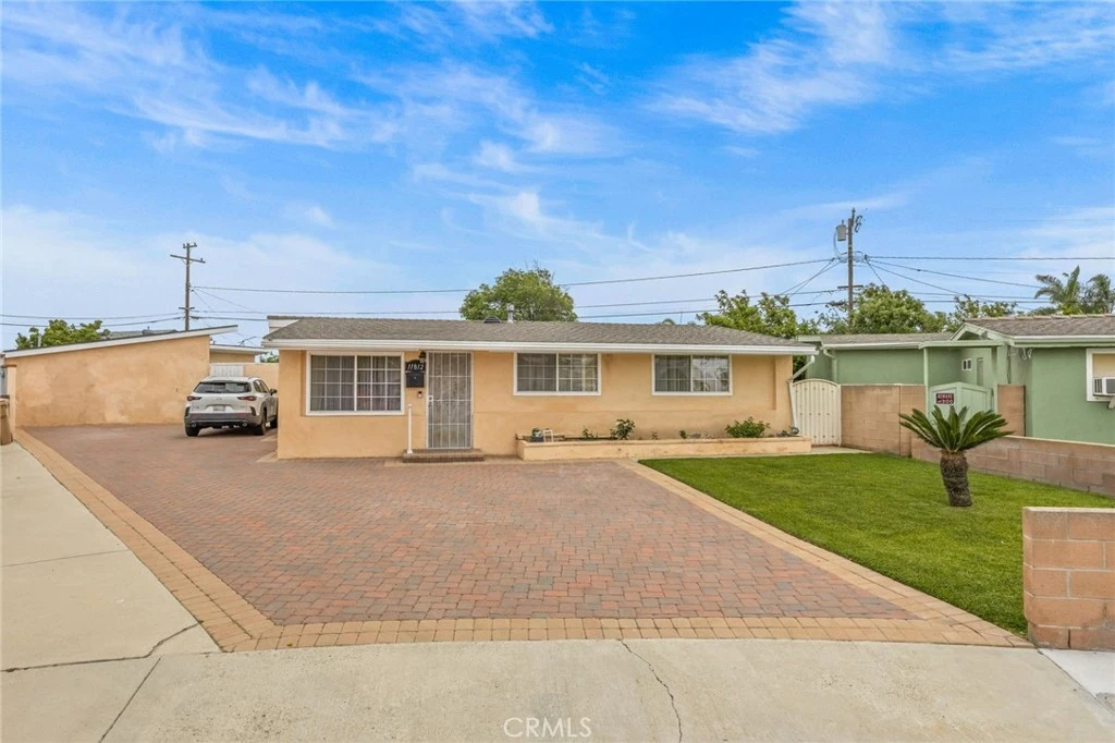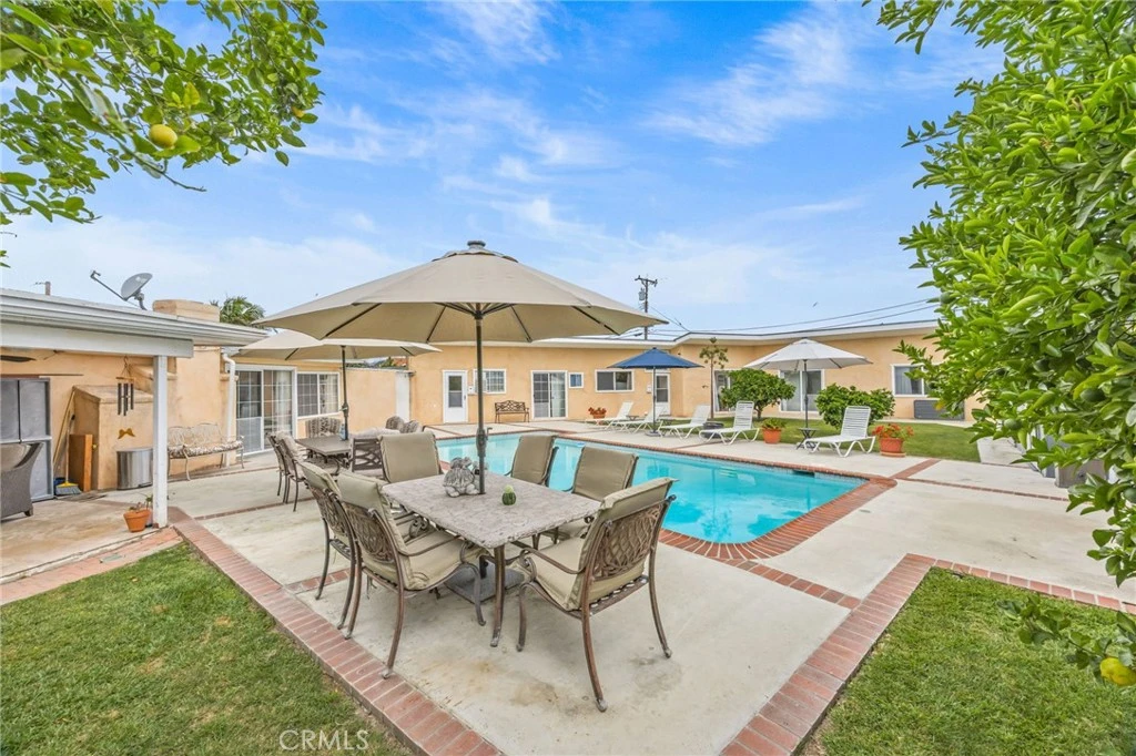 HOT BUY! Rare 2-on-a-lot located in the unincorporated area of Anaheim on a quiet cul-de-sac featuring three separate living units, a sparkling pool, and a highly versatile layout on a pie-shaped lot just under 1/4 acre, offering a unique blend of space, functionality, and potential for multi-generational living or income opportunities (buyer to verify). The single-story main residence includes 3 bedrooms and 2 bathrooms with upgraded finishes throughout, highlighted by a kitchen with stone countertops, matching stone backsplash, oak cabinetry, and stainless steel appliances that opens to the family room with fireplace, mantel, and built-in oak entertainment center, along with a formal living room off the entry. Additional upgrades include recessed lighting, a skylight, vaulted finished ceilings, ceiling fans, and tile flooring throughout, while the spacious primary suite offers a large en-suite bathroom with dual sinks and mirrored closet doors. A covered patio with ceiling fans, TV, and speakers extends the living space outdoors, creating a true indoor-outdoor lifestyle. The detached secondary structure features two fully separate units with no shared walls, separated by a central laundry room with sink and exterior access to the pool and side yard. Unit 1 offers 1 bedroom, 1 bathroom, a kitchen, and family room, while Unit 2 offers 2 bedrooms, 1.25 bathrooms, a living room, and a spacious full kitchen with double oven and counter bar. Both units are upgraded with stone countertops, vaulted ceilings, ceiling fans, updated flooring, newer windows, and heating and air conditioning, each with private sliders leading directly to the backyard and pool area. Set on nearly 1/4 acre, the property also features low-maintenance landscaping, block walls, mature fruit trees, multiple high-end storage units, and an upgraded paver driveway with ample parking and potential RV or boat storage. Conveniently located near parks, schools, shopping, and dining, this is a rare opportunity in today’s market—schedule your private showing today before it’s gone.