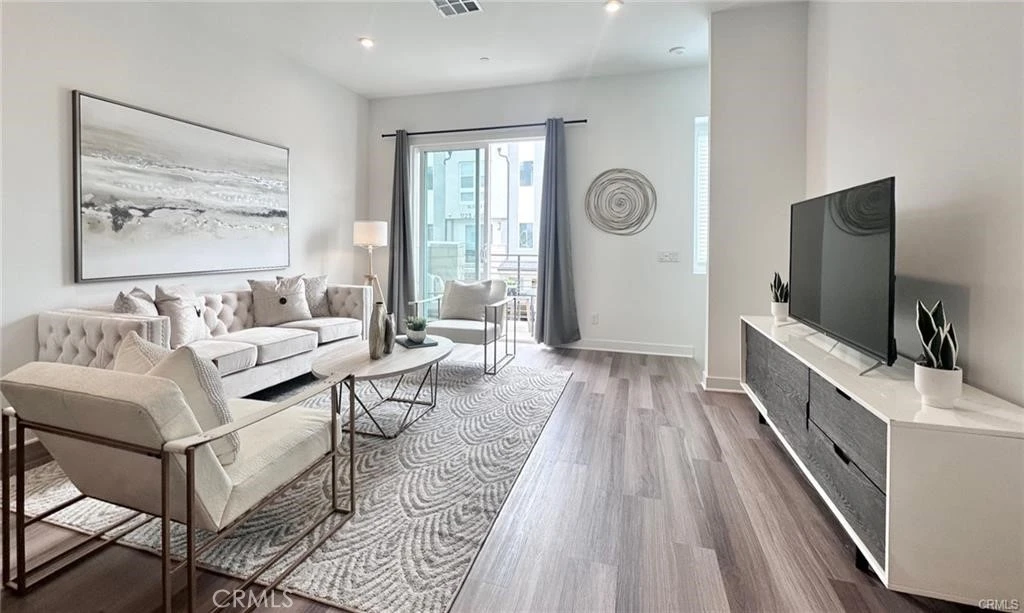 Welcome to your luxurious retreat in 100?WEST, Anaheim’s premier gated community by Toll Brothers. This contemporary 3-story townhome features 3 spacious bedrooms and 3.5 baths across 1,881?sq?ft, with premium wood floors, plush carpeting, and an open-concept living area. Cook and entertain in the modern kitchen, unwind on the private deck, or host guests atop your rooftop patio—complete with fireworks views of Disneyland. The extended 2-car garage and in-unit laundry offer added convenience. Enjoy secure access via gated entry and elevator, and take advantage of amenities including a pool, spa, BBQ areas, dog parks, and landscaped courtyards. Located just minutes from freeways (I-5/55/91), top entertainment hubs (Disneyland, Honda Center, Angel Stadium), quality education, healthcare, and retail, this home offers luxury and lifestyle in a fantastic Anaheim location.