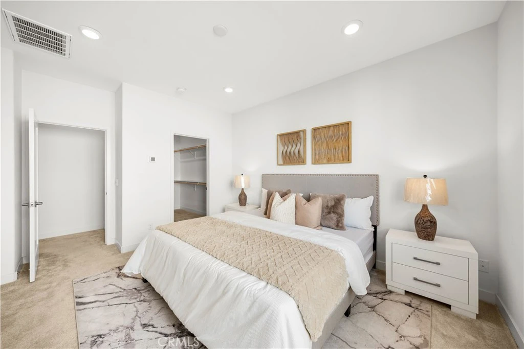 This refined three-level residence showcases a thoughtfully designed layout that blends modern comfort, natural light, and functional elegance, complete with an attached two-car garage. The first level features a private bedroom with a full bathroom and a walk-in closet, offering a versatile space ideal for guests, extended living arrangements, or a dedicated office retreat. Direct interior access from the garage adds everyday convenience while maintaining privacy and efficiency. The second level serves as the heart of the home and is highlighted by expansive windows that fill the space with abundant natural light, creating a bright and inviting atmosphere throughout. The living room flows seamlessly into the kitchen, offering an open and cohesive design well suited for both daily living and entertaining. The kitchen is appointed with stainless steel appliances, abundant cabinetry, and a spacious walk-in pantry, combining style with exceptional storage. An adjacent balcony extends the living space outdoors and overlooks the community pool, providing a relaxing setting for morning coffee or evening unwinding. The third level offers two additional bedrooms and two full bathrooms, including a well-appointed primary suite designed for comfort and functionality. The primary bathroom features dual sinks and generous counter space, creating a refined daily routine. Both bedrooms are enhanced by large windows that allow abundant natural light, while the primary bedroom also enjoys views of the community pool. A built-in study desk area provides a dedicated workspace, and the conveniently located laundry area on this level adds to the home’s thoughtful design. Throughout the residence, each room is enhanced by large windows that create a bright and airy living environment. The multi-level layout offers a balanced separation of space, allowing for both openness and privacy. Clean architectural lines, efficient use of space, and seamless flow between levels contribute to the home’s sophisticated appeal. Ideally situated within a well-maintained community, the property offers convenient access to shopping, dining, and entertainment destinations. Located near Disneyland Resort and Angel Stadium of Anaheim, and with easy access to the Interstate 5 and State Route 57, this residence delivers an exceptional blend of modern design, refined living spaces, and a highly convenient location.