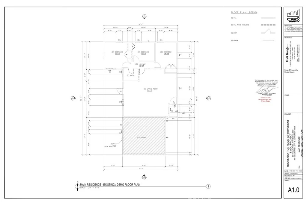 209 N Dahlia Dr offers a rare opportunity to step into a thoughtfully planned project where approximately seven months of design, engineering, and permitting have already been completed by the seller. Approved plans and active permits are in place to transform the main residence into a 3 bedroom and 2 bathroom home with a dedicated laundry room. The home has been taken down to framing, creating a clean slate for the next phase of construction. Underground sewer, water, and gas work has been completed, inspected and signed off by the city at the rough stage. The plans also include a detached ADU, approximately 795 sq ft, designed as a 2 bedroom, 1 bathroom unit. The ADU plans are fully approved by the City of Anaheim and the foundation is prepped and ready for concrete pour. This property allows a buyer to take over at a stage where the vision is approved, the groundwork is underway, and the remaining construction can be completed to their own preferences and timeline. Buyer to verify all plans, permits, square footage, and construction status with the City of Anaheim.