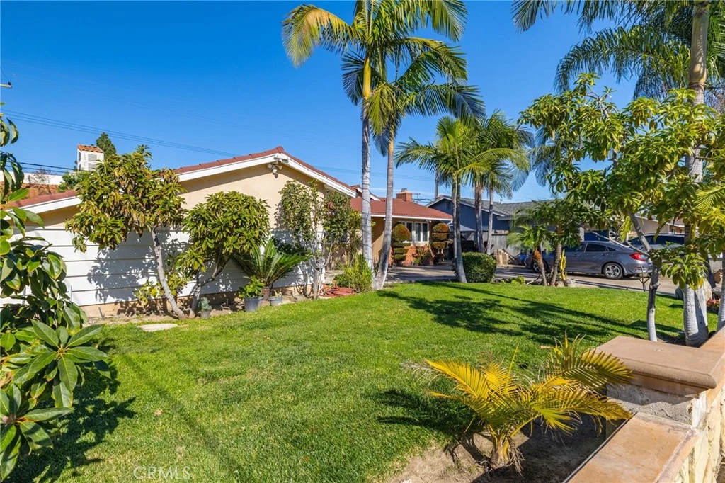 UDATE: TWO BEDROOMS RENOVATED! Single-story residence with resort-style grounds, engineered for privacy, recreation, and serious entertaining capacity. The front elevation delivers immediate curb appeal: manicured lawn, mature palm trees, decorative stone wall, and a wide concrete driveway leading to an attached garage. Warm stucco, brick accents, and a tile roof create a cohesive exterior that reads established rather than generic. The backyard is a purpose-built outdoor environment rather than a collection of upgrades. A custom freeform pool and spa anchors the space, featuring an 8-foot deep end, integrated heater, dramatic waterfall, and built-in waterslide. A grotto-style swim-through adds architectural depth and creates multiple experiential zones within the pool itself. The sound of moving water carries across the yard, reinforcing the resort feel. Entertaining infrastructure is extensive. A pergola-covered patio supported by stone-clad columns houses a built-in BBQ island with countertop workspace. Nearby, a full stacked-stone outdoor fireplace establishes a second gathering zone for evenings. Dining patio, bar, fire feature, and pool deck function as distinct but connected environments, allowing the yard to host multiple activities simultaneously without feeling congested. Hardscape is cohesive throughout, utilizing stamped concrete and pavers to define circulation and maintain visual consistency. Landscaping reinforces the tropical aesthetic while remaining functional and productive, with mature guava, fig, and avocado trees integrated into the grounds. Location adds strategic value: California State University, Fullerton is under 4 miles away, and Disneyland is also under 4 miles, positioning the property favorably for both lifestyle and long-term demand. This is not a standard backyard with features added over time. It is an intentionally designed outdoor environment built around experience, utility, and impact. Ideal for buyers who value privacy, hosting, and a high-use outdoor lifestyle.