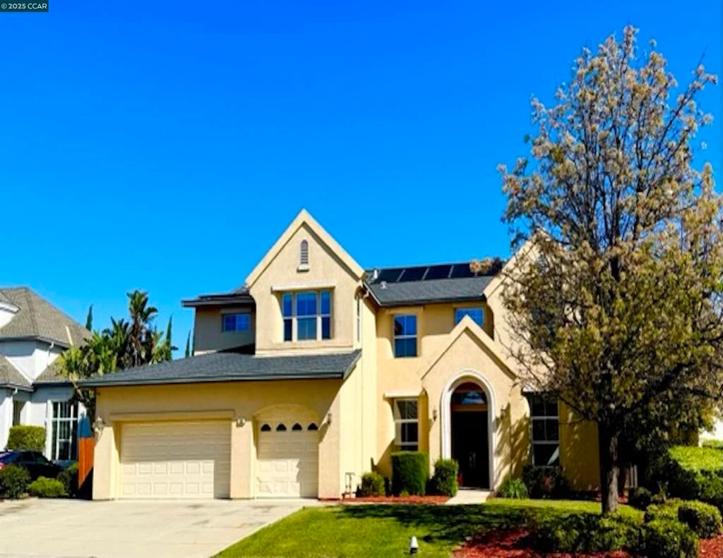 WELCOME to your new home!!! A spacious, contemporary residence offering a luxurious feel and one of the largest floor-plans in the community. A main french door entry, leads to side-by-side formal dining & living rooms, both with faux-marble painted, wood column entries. Those same custom columns mark entry to the grand room, including a bonus sitting room with an engaging fireplace. An expansive kitchen, with a chef island, new appliances, pantry, endless cabinetry and pendant/recessed lighting is not to be missed! 1st Fl. has 1 of 2 primary bedrooms and allows privacy for guests and family! 2nd Fl.-The grand staircase leads to a massive primary bedroom with french door entry and loads of natural light. 3 additional bedrooms with possibility of 7 total (2 bonus rooms on top of the initial 5)! The connecting primary bedroom boasts a sizable walk-in closet, two hallway closets, his/her sinks, a soaking tub, walk-in shower & vanity. The entire home provides an open floor-plan, ample living space, vaulted ceilings, immeasurable natural and man-made light & solar (home/pool). Near to BART, HWY 4, most hospitals, shopping, dining and the Contra Loma Regional Park. The backyard is a sun-lit oasis with an in-ground pool and waterfall, perfect for entertaining. Property digitally staged.