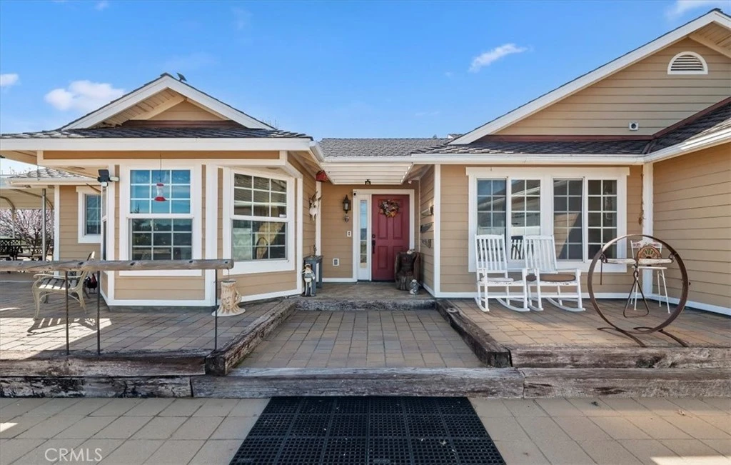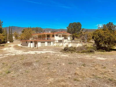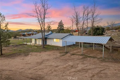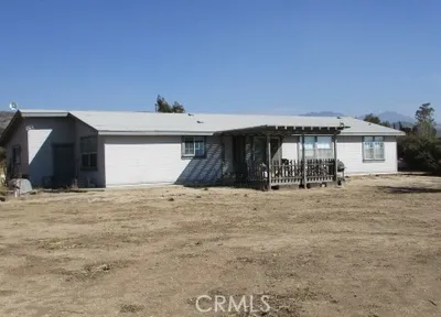 Peaceful country living with stunning panoramic views is ready to be yours. This extremely rare find checks all the boxes with a four bedroom stick built home and 2 car garage on almost 8 acres of flat and usable land with several outbuildings. The home offers four bedrooms including a primary bedroom with direct outside access and an en-suite bath with dual sink, vanity separate tub and shower and walk in closet. There are three additional bedrooms and a full bathroom. The kitchen offers plenty of counter and cabinet space with a center island. Even the cozy breakfast/dining nook offers amazing mountain views. Oversized family room has a wood burning pot belly stove perfect for enjoying cool nights! Inside laundry with direct access to the two car garage. The home has a raised front porch and wraps around to a large covered side porch perfect for entertaining guests. The rectangular shaped property has well-defined borders, is all usable and is extremely well maintained. There is a raised irrigated garden, 3 nut trees (pistachio, Almond and pecan) and 8 fruit trees (Apricot-2, plum, cherry, peach, nectarine, apple-2) and a garden shed. There is also a hand-watered grape vine. There is an enclosed well pump house with a new pump put in 6 months ago. Well depth is approximately 170 feet. Propane tank is leased. Shooting range area with it's own 4'x6' shed. There are three additional 8'x10' commercial grade aluminum sheds, an 8'x14' commercial grade shed and a tool/storage workshop. The panoramic views from all parts of the home and property are stunning including snow capped Mt. San Jacinto and Thomas Mountain. Tractors/equipment NOT included but seller is open to sale of personal items outside of escrow. Paved roads lead to a short dirt road of approximately 400 feet with 2 separate gates to access the property. This home offers a truly unique country life experience.