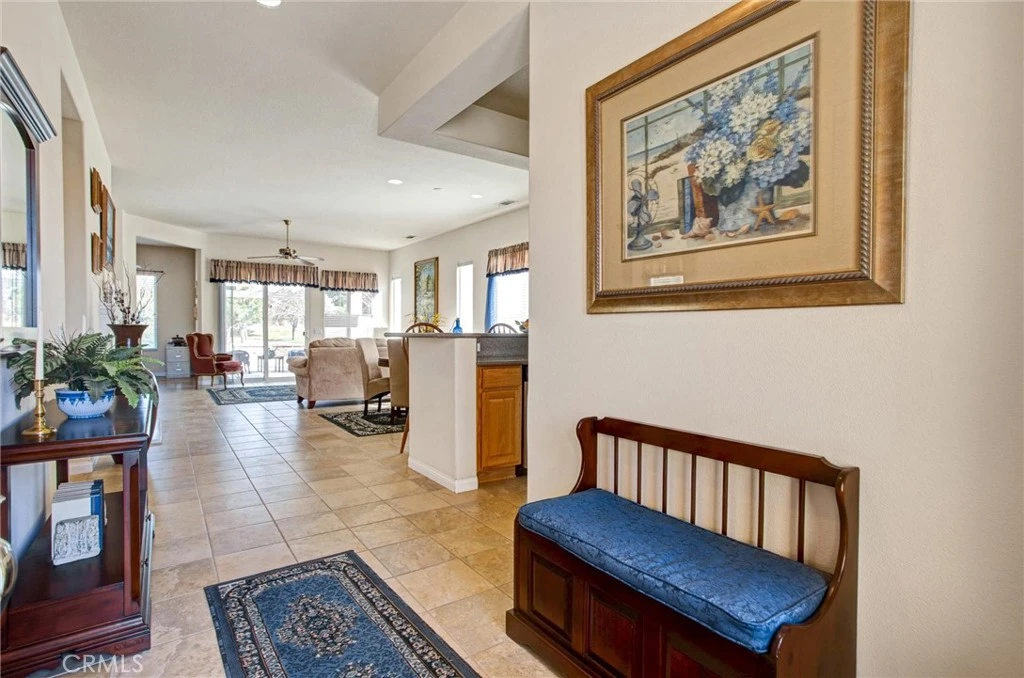 Welcome to 10788 Green Valley Road, a spotless and beautifully maintained view home located in the highly desirable Sun City by Del Webb's 55+ community. This immaculate 2-bedroom, 2-bath plus office home offers 1,768 sq ft of comfortable single-story living with an open layout. This popular Sycamore model is enhanced by natural tile floors, 10-foot ceilings, abundant light, and a warm, inviting atmosphere. The spacious living and family areas flow together effortlessly, anchored by a cozy fireplace and large windows that capture serene golf course views while still providing exceptional privacy. The kitchen features solid-surface countertops, mosaic tile backsplash, stainless appliances, an eat-in area plus counter/bar that opens to the living space, making it ideal for both everyday living and entertaining. In addition to the two bedrooms, the home includes a bright office/den with beautiful views, offering the perfect space for work, hobbies, or quiet reading. The primary suite provides a peaceful retreat with generous space, a huge walk-in closet, and an en-suite bath, while the additional bedroom and full bath offer comfort for guests. Step outside to a charming covered patio, perfect for enjoying quiet mornings or relaxing evenings overlooking the manicured surroundings. Located within the prestigious Del Webb’s Solera 55+ community, residents enjoy a guard-gated entry, beautifully maintained grounds, a championship golf course, a stunning clubhouse, sport courts (tennis, pickle, bocce), heated pools/spas, fitness facilities, and a vibrant calendar of social activities—all designed to support an active, resort-style lifestyle of comfort, convenience, and connection. Home can be purchased furnished with golf cart with great offer! Hurry and schedule a viewing!