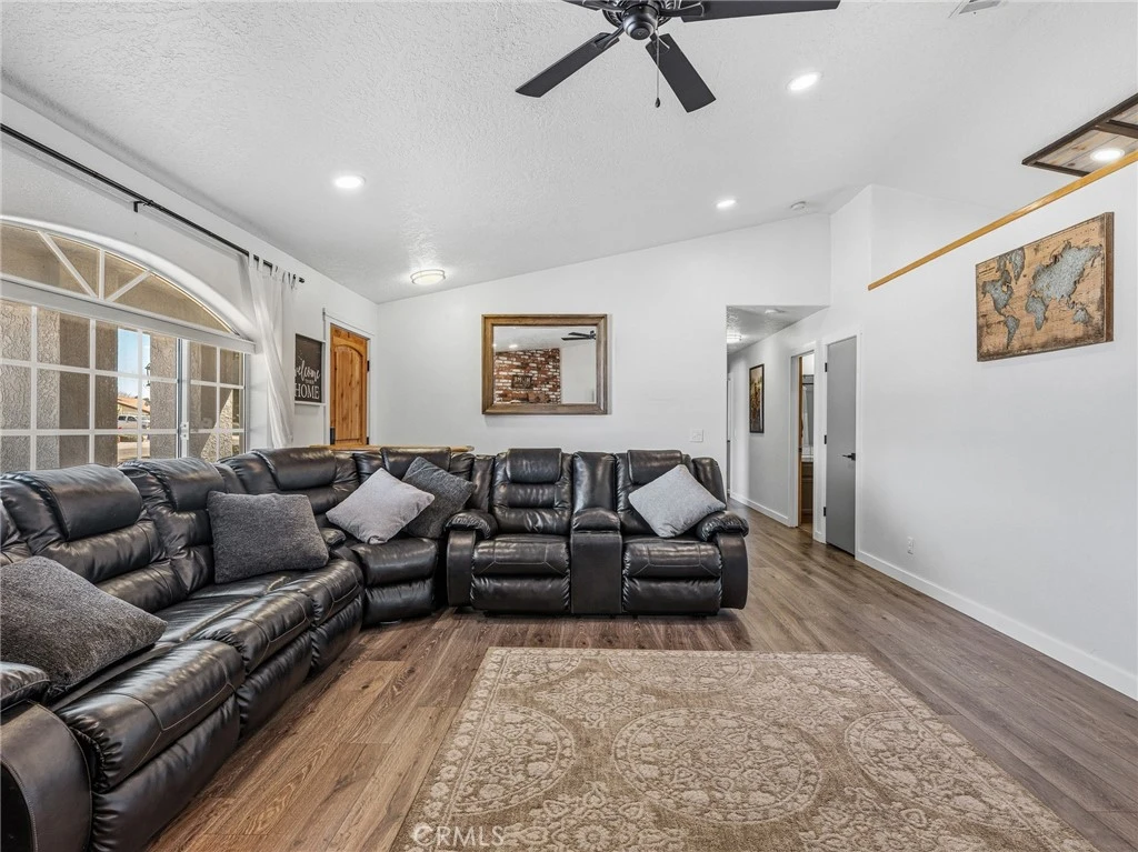 Beautiful dual–primary suite home in the desirable Spring Valley Lake Equestrian Estates, situated on a spacious half-acre lot with direct bridal path access and full HOA amenities. This freshly remodeled single-story home offers 4 bedrooms and 3 bathrooms and is just a short walk from the community’s equestrian facilities, including arenas, trails, and boarding. Inside, the open and modern layout features soaring vaulted ceilings, new flooring, Craftsman-style trim, and sleek flat black fixtures throughout. The updated kitchen showcases white quartz countertops, stainless steel appliances, dual pantries for excellent storage, and scenic mountain views. The flexible floor plan includes two large primary suites—perfect for multi-generational living, guests, or added privacy—along with two additional bedrooms and three full bathrooms. A spacious three-car garage provides plenty of room for vehicles, storage, or hobbies. Outside, the expansive lot offers a wide driveway with abundant parking, low-maintenance landscaping, and a private backyard enclosed by white vinyl fencing. Outdoor features include an oversized RV gate with direct access to the bridal path for convenient trail riding, two oversized storage sheds for tack or equipment, a covered patio ideal for relaxing or entertaining, a mini orchard on automatic irrigation with nine fruit trees, and garden beds with automatic watering. Residents enjoy full access to the amenities of the Spring Valley Lake Association, including boating, water skiing, and wakeboarding on the private 200-acre lake with marina, fuel dock, and boat slips. Additional community features include a swimmable beach, fishing areas, parks, community building, equestrian center, and 24/7 public safety patrols that enhance the safe, family-friendly environment. The home is located within the Apple Valley Unified School District and near Rio Vista School of Applied Learning, Sitting Bull Academy, and Apple Valley High School. Whether you enjoy horses, lake recreation, or simply want space and modern comfort in a gated community with outstanding amenities, this property offers the best of High Desert living in one of the Victor Valley’s premier equestrian neighborhoods. The property may also be offered furnished, providing a convenient turnkey opportunity for buyers.