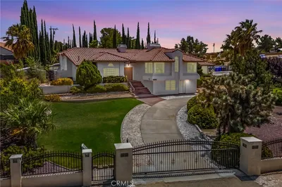 Welcome to 20280 Gala Road nestled in the heart of Apple Valley! This stunning 5 bedroom, 5 bathroom home located in the sought after gated Verandas community offers many upgrades and updates that it perfectly blends modern comfort with serene desert living. Once you step in you will find a peaceful open floor plan with high ceilings and large windows that flood the space with natural light. As you step into the home you will first enter the formal living and dinning spaces, perfect for entertaining family and guests. Continue through to find the heart of your home, a chef's dream kitchen! Here you will be able to create cozy breakfasts and restaurant quality dinners with your Viking 6 burner stove with gas oven, ample of counter top space for preparing those delicious meals. The island provides additional counter top space with a utility sink for quick clean up of fruits and vegetables. The walk in pantry provides ample storage space, while the double-wide refigerator gives plenty of cold storage. Best of all this you can cook and serve meals to the family with the open space to the family room. The large windows continue to flood the space with natural sunlight as the front of the home. Ready to retreat for the night? With a split foor plan, the primary suite sits opposite of the additional bedrooms, giving you privacy. The primary bedroom offers large french doors opening to your backyard. As you continue you will find a primary ensuite bathroom that helps you relax and rejuvenate. You will find plenty of space in your his and hers sinks, with the sixth bedroom converted into the closet of your dreams! A stand alone bathtub provides you with a space to soak away the troubles of the day, with a steam shower and dry sauna ready to relax your body and mind. On the opposite side of the property you will find the an additional a Junior Primary Suite, the in house laundry room, along with 3 large bedrooms and 2 bathrooms. Venture outside to your private oasis, complete with a sparkling custom build pool, lush, professionally managed landscaping, and a covered patio perfect for entertaining or relaxing under the stars. The expansive backyard provides plenty of room for outdoor activities, gardening, or simply enjoying the tranquil surroundings. This home is just minutes from local shopping, dining, and recreational opportunities. Don’t miss your chance to own this slice of paradise and experience the "Better way of Living" right here in Apple Valley!