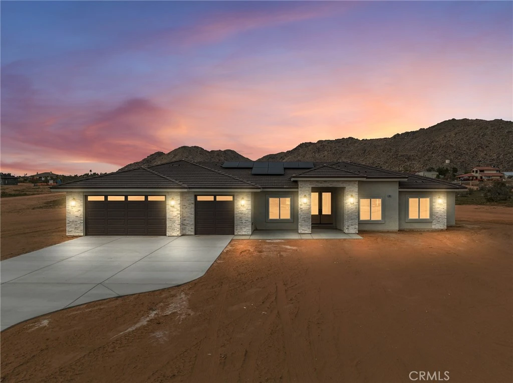 Nestled on 2.5 acres of pristine desert landscape, this newly constructed home blends modern comfort with wide-open Western serenity. Offering 4 spacious bedrooms and 2-1/2 beautifully appointed bathrooms, this 2,176-sq-ft residence is designed for both relaxation and functionality. Step inside to an airy, open-concept living space highlighted by vaulted ceilings and a cozy fireplace that anchors the great room. The gourmet kitchen is a true centerpiece, featuring a large island, upgraded stainless steel appliances, and beautiful alder hardwood stained cabinetry —perfect for cooking, gathering, and entertaining. Each bedroom offers ample space and walk-in closets, while the primary suite provides a peaceful retreat with views that stretch across the desert horizon. Large windows throughout the home frame sweeping vistas of the surrounding landscape, with the property sitting close to the base of the mountains for a dramatic and tranquil backdrop. With plenty of room to roam, this property is also ideal for equestrian enthusiasts—designated as horse property, it offers the freedom and space to create your own desert ranch lifestyle. A rare blend of new construction, natural beauty, and wide-open potential, this home captures the essence of desert living at its finest.