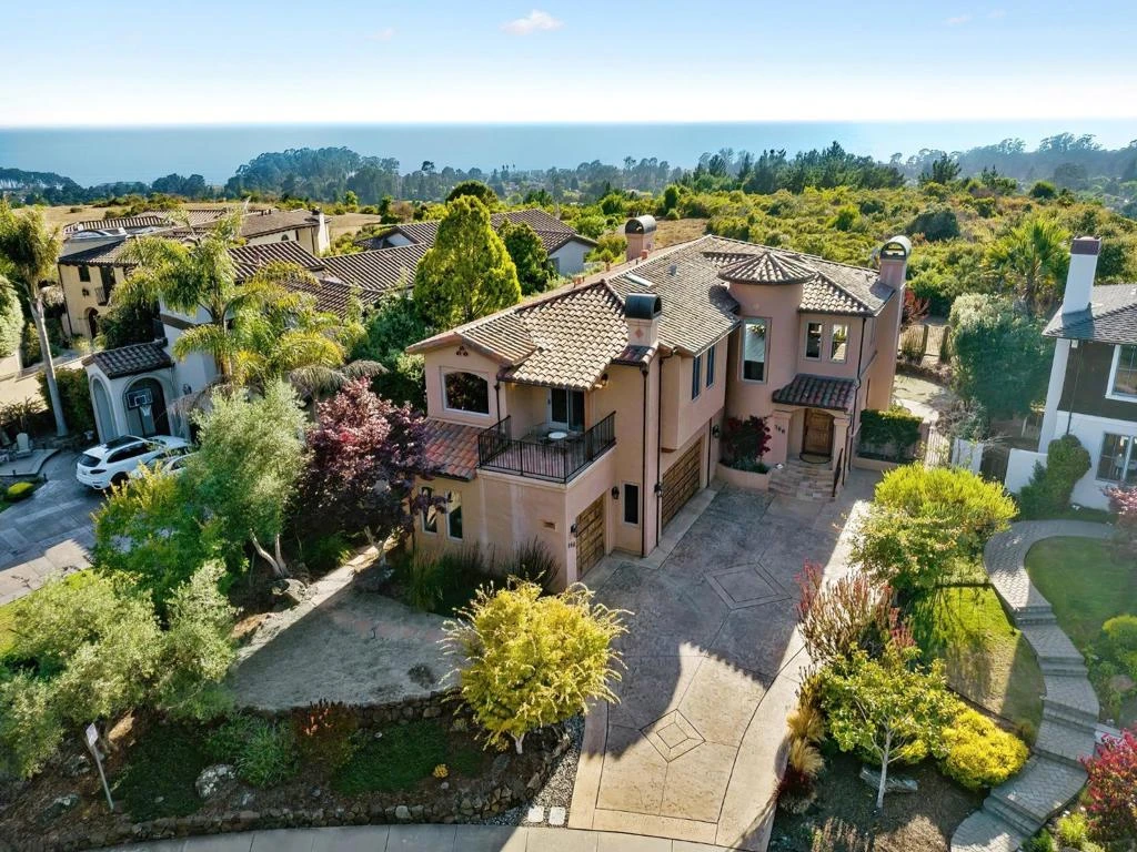 Is it your time to live in an elegant, comfortable ocean-view home in an exclusive gated community? Situated on a ridge with panoramic views yet walking distance to Seascape Resort, shopping, restaurants, schools and the beach. You can wake up each morning to the sun shining in your bedroom and in the evening, you can relax on your large deck watching the amazing sunsets over the ocean. Enjoy the moon rising over the hills and the twinkling lights of Capitola and Santa Cruz at night. The reverse floor plan maximizes the 24/7 vistas while providing single-level living with kitchen, living and dining areas, and primary bedroom on the upper floor. Remodeled in 2015, the centerpiece of the home is the kitchen with its 12' island with seating for six, pendant lighting, and lots of prep space including a butler's pantry and dumbwaiter. More living space on the ground floor with 3 bedrooms, 2 baths, office and family room with its own wet bar and refrigerator. Wide plank wood floors, natural stone counters, three gas fireplaces, recessed LED lighting, built-in Sonos speakers, and wine refrigerator exemplify casual elegance. The three-car garage provides plenty of room for autos, bicycles or additional storage. It is time to enjoy the coastal lifestyle at its finest.