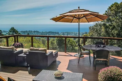Welcome to resort-style living. If you are looking for an elegant spacious home with ocean and greenbelt views plus ultimate privacy, this is it! It is ideally perched on a sunny ridge just moments to Aptos, Soquel & Capitola Villages. The private entrance courtyard is flanked with towering palm trees, custom gate and water feature. This contemporary home is flooded with natural light due to the high ceilings, an abundance of windows and skylights. It boasts four spacious bedrooms & four full bathrooms plus, a converted garage space which is ideal as a guest room or office area. An entertainers dream home, it is complete with gleaming hardwood floors, updated bathrooms & a spacious chef's grade kitchen perfect for any discerning chef. Beautifully appointed with separate living, dining, family & laundry rooms. Two upstairs on-suite bedrooms with separate staircase access. Sleek updated bathrooms with curb-less shower floors, designer tile & European glass enclosures. Plenty of parking for an oversized vehicle or boat. Plus a Nest system, solar water heating and purification system. Live the ultimate California lifestyle. relax or entertain in the manicured yard which has an inviting pool area with built-in spa, large deck, horseshoe pit, koi pond and gardening areas. Welcome home.