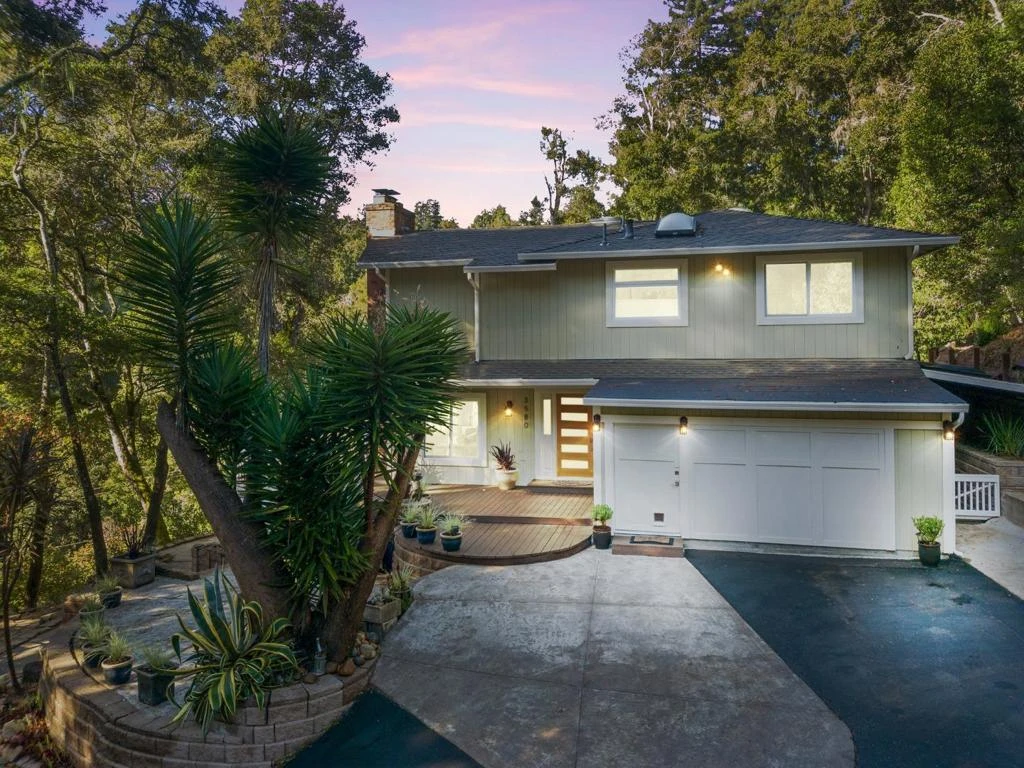Tucked into Aptos hills only one mile from Cabrillo College. Two beautiful forest homes nestled into the hillside creates a welcoming and peaceful space. With show stopping views from every window, each room has been thoughtfully updated & renovated: all new flooring, welcoming kitchen with large island, quarts counters, farmhouse sink, Wolf range, & double ovens make a great space for living and entertaining. Beautiful master suite w/ its own fireplace, forest views, spa-like bath, and adjoining office. Two additional bedrooms share quartz and tiled bathroom with double sinks & a shower/tub and a separate laundry room. Additional main-level suite with its own private entrance. The detached ADU mirrors the main house design with a full kitchen, bath, bedroom, and cantilevered deck, with treehouse like views. This is perfect for guests, extended family, or rental income. Ask agent about prior 3-year rental income history. Ideal for buyers seeking peace, artistic inspiration, or a quiet base for hybrid work lifethis isnt just a home, its a retreat from the world.