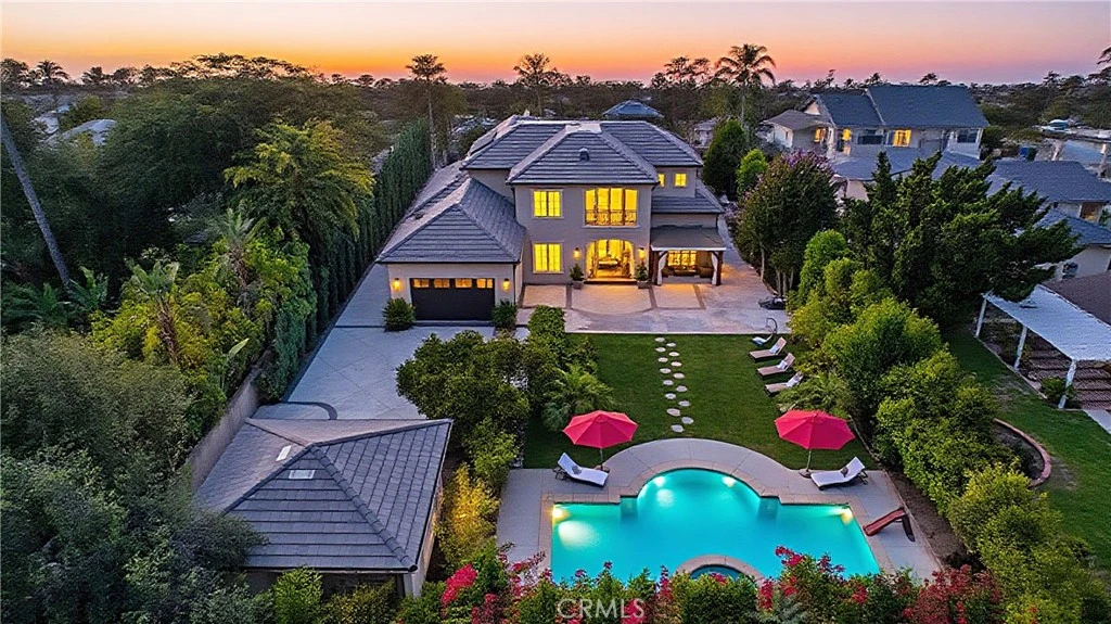Spectacular Contemporary French Estate, designed by renowned architect Robert Tong, in Prestigious Tree-Lined Neighborhood completed in 2015. This exquisite estate home is nestled in a quiet, prestigious neighborhood, offering an exceptional blend of luxury, sophistication, and meticulous craftsmanship. Built with the highest quality materials and an eye for every detail, this residence delivers timeless elegance and modern comfort. Inside, the home welcome you with soaring two-story grand foyer features a chandelier with motorized lift, an elegant spiral staircase, and elevator access to all levels, boasts circular dome ceiling adorned with double and triple crown moldings, designer light fixtures, and custom casement windows. Flooring includes marble, travertine, rich hardwood, and carpet throughout. The formal living room impresses with 2-story ceiling and a fireplace, while the private library includes custom built-ins. Additional spaces include a game room with custom wet bar, formal dining room, and a spacious family room with views of the exterior courtyard—complete with fireplace—and the serene rear yard. Entertainment is elevated with a state-of-the-art theater room equipped with immersive surround sound. The gourmet kitchen is a chef’s dream, featuring a large central island, Wolf Professional Series appliances, Subzero refrigerator, custom cabinetry, separate wok kitchen, and a generous walk-in pantry. Every bedroom is a suite. Each bedroom is a private suite. The luxurious master suite offers a private sitting area, a large balcony, and an terrace with sweeping views of the backyard. It also features a huge walk-in closet with custom organizers and a spa-like bathroom with a Jacuzzi tub and steam shower. Additional features includes a wholehouse water softener system. Outside, the professionally landscaped yard showcases a sparkling heated pool and spa, plenty of fruit trees, gazebo, perfect for relaxation or entertaining. Additional amenities include full security alarm and surveillance system, paid solar panels, a four-car garage, gated U-shaped driveway for easy access and additional guest parking. Don't miss the opportunity of lifetime to call this Home!