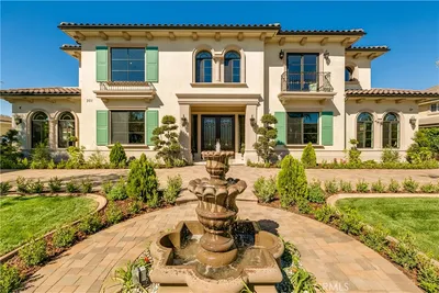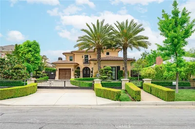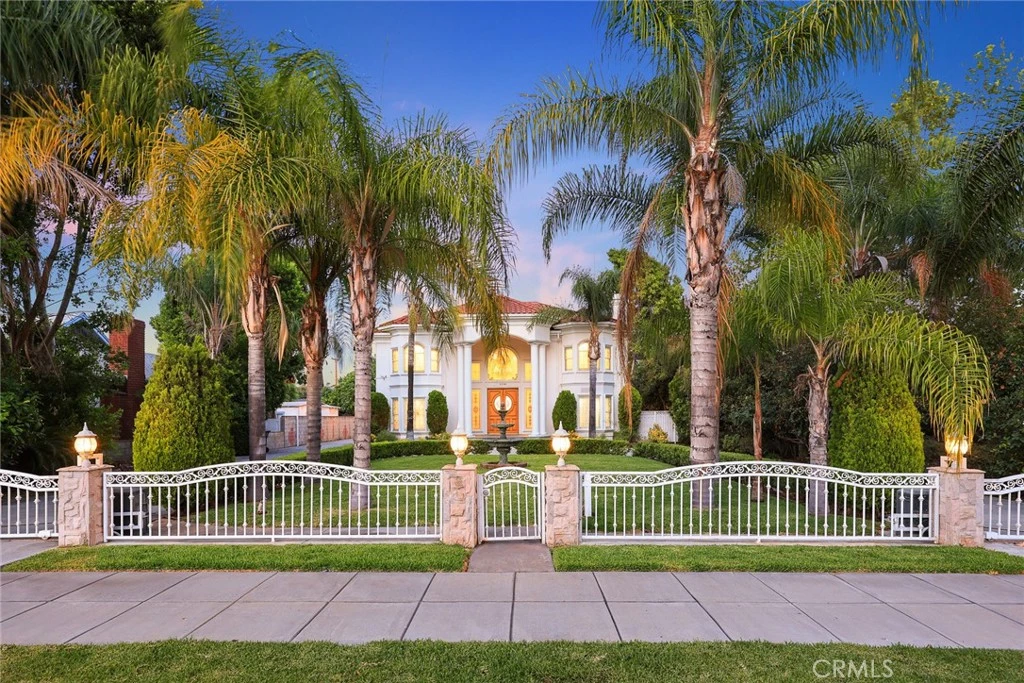 This Gorgeous & Elegant 2 story custom estate located on Beautiful and Quiet neighborhood with distinguished Arcadia School District. It features private security gated, stately 2 column studded entrance leads to a grand foyer under cathedral ceiling featuring a magnificent crystal chandelier. Downstairs of the main house: wood-paneled library; marble-floored living room; large newly remodeled built-in shelf for ample storage spaces . Family room with a newly build wet bar connected to the fully remodeled gourmet kitchen behind dining room and a fully remodeled separate wok kitchen. 2 bedroom suites, plus a 1/2 bath as the powder room for guest. Upstairs: 2 hard wood staircases connected downstairs; 4 bedroom-suites with common area for study or recreation; Jacuzzi tub, steam room, 3 walk-in closets and retreat area inside the master suite against with beautiful view of San Gabriel mountains. Palm trees surround the detached guest house(1500 sqft) with permit for entertainment , Sparkling pool and water fountain. Refinements such as marble, stone, custom-made cabinetry, drapes and built-ins are evident throughout with many stained-glass windows. Front yard features circular driveway and garden with year-round roses and fruit trees. 3-car attached garage plus plenty of car parking space. Walking distance to schools, super-market and multi-cultural eateries. A Great opportunity to own this Luxurious Home !!!
