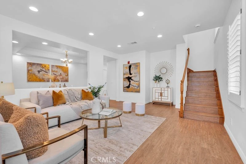 Well-Maintained end-unit townhouse located in the desirable City of Arcadia. This bright and spacious home features 4 bedrooms and 3 full bathrooms with high ceilings and abundant natural light, and recessed lighting throughout the house. The living room offers wood flooring, wood shuttles and excellent natural light. Fresh interior paint throughout. The dining room showcase elegant crown molding with a coffered ceiling. The kitchen is equipped with stainless steel appliances, cooktop stove, granite countertops, and a full granite backsplash. Laundry room is conveniently located adjacent to the kitchen. The main floor includes one bedroom with two closets and one full bathroom, ideal for guests or mutigenerational living. Upstairs features three bedrooms, including a spacious primary suite with crown molding, private balcony, two walk-in closets, dual vanity, separate shower, and soaking bathtub with jacuzzi. One secondary bedroom also includes a balcony with mountain views. Hallway bathroom is shared by the two upstairs secondary bedrooms. Additional highlights include a two-car attached garage with storage space and EV charger, private backyard perfect for BBQ and entertaining, and guest parking located at the rear of the community. Conveniently located near award-winning Arcadia high school, middle school, Westfield Santa Anita Mall, restaurant. A must-see home.