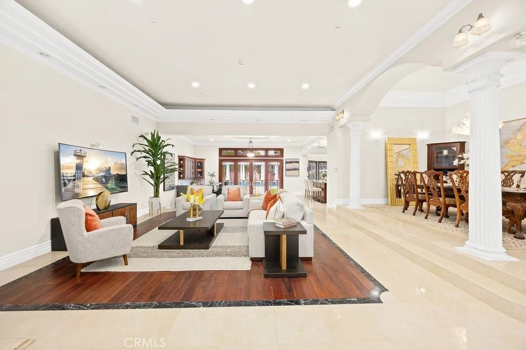 Welcome to the award-winning Arcadia School District home! This professionally designed, luxurious single-story residence with breathtaking mountain views features 4 bedrooms, 3.5 bathrooms designed with an open-concept layout and soaring ceilings. 2004 Custom Rebuilt. This home boasts high-end cherry wood cabinetry, premium appliances, marble flooring, and a living room with bay windows. The expansive family room is equipped with a Bose surround sound system, hardwood floors, and a custom-built bar. Elegant French double doors open to a stunning backyard featuring a Roman-style waterfall swimming pool. The primary bedroom includes a beautiful vanity, shower, and jacuzzi tub. A dedicated office space allows for multiple users simultaneously. This home also features both a Western open-style kitchen and a separate wok kitchen, a formal dining room with a built-in pantry, an independent laundry area with granite countertops and custom cabinetry, and two grand Swarovski chandeliers that enhance the luxurious ambiance. This is a perfect home for both relaxation and entertainment—don’t miss this incredible opportunity!