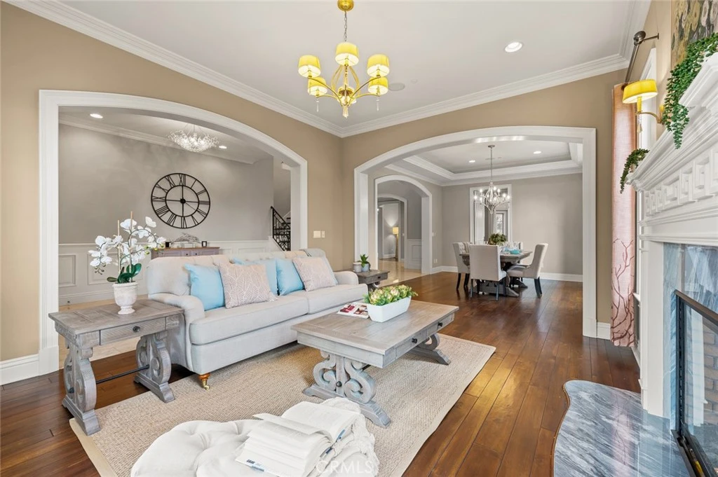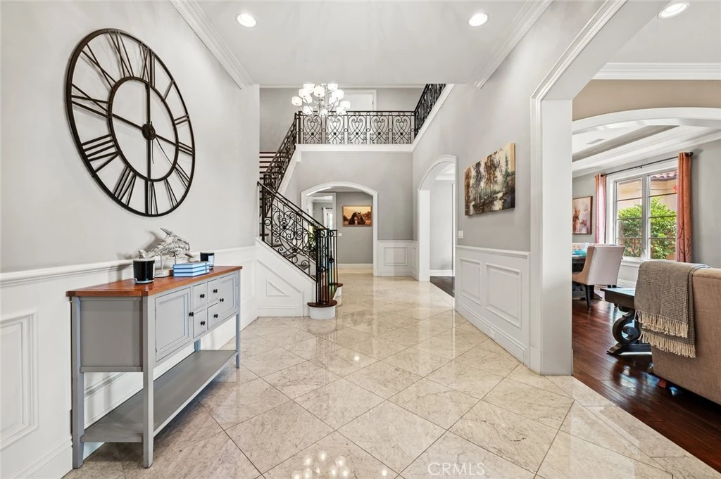 Located on a quiet street in the highly desirable Arcadia neighborhood, this custom-built Mediterranean estate, designed by renowned architect Robert Tong and built by Mur-Sol Construction Inc., showcases timeless elegance and quality craftsmanship. Featuring 4 en-suite bedrooms and 4.5 bathrooms, the home offers a functional and well-balanced layout. A dramatic two-story foyer with soaring ceilings, chandelier, and marble flooring creates a striking first impression. The bright living room with fireplace flows seamlessly for both entertaining and daily living. The main level includes a guest suite, formal dining room, spacious family room, and a gourmet kitchen with JennAir appliances, marble countertops, large island, plus a separate wok kitchen. A home theater adds to the entertainment experience. Upstairs offers a loft and three additional en-suite bedrooms, including a luxurious primary suite with walk-in closet, spa-style bath, Jacuzzi tub, and steam shower. Additional features include a laundry room, central vacuum, tankless water heater, whole-house water filtration system. Set on a 7,812 sq ft lot, the backyard provides a peaceful retreat with a mature avocado tree. Conveniently located near Keck Medicine of USC, Santa Anita Park, and Westfield Santa Anita, within the award-winning Arcadia Unified School District.