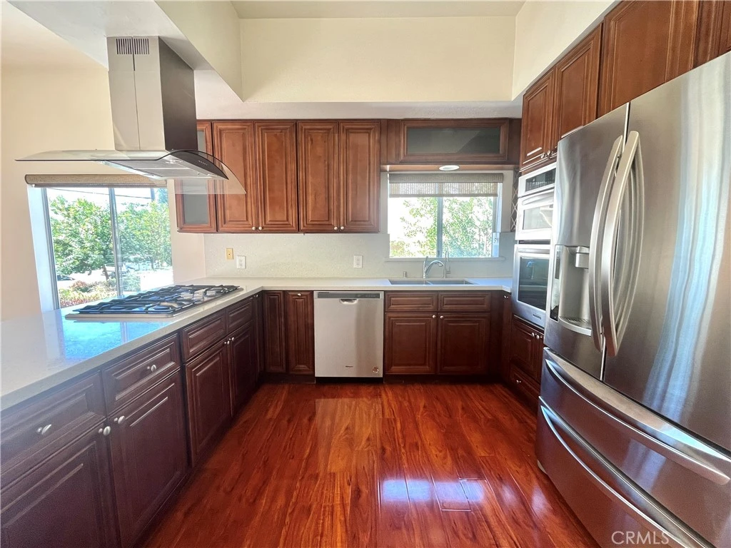 Move-in ready home located in a quiet community with distinguished Arcadia schools! Featuring 3 bedrooms and 3.5 bathrooms, including a ground level bedroom and bathroom, with updated modern kitchen, private outdoor patio and balconies. Kitchen with stainless steel appliances, refrigerator, built-in gas cooktop and range hood, oven, microwave, dishwasher, abundant built-in cabinetry. Breakfast counter and breakfast nook opens to a bright outdoor balcony. Spacious living room and open dining room with large windows offers plenty of natural light, built-in storage, and private balcony. Master bedroom suite features high ceilings, walk-in closet, and outdoor balcony. Master bathroom with separate shower, bathtub and double sink vanity. Laundry available inside the unit. Attached two-car garage with direct access and built-in storage. The community features a swimming pool and covers water and trash utilities. Excellent convenient location nearby Arcadia schools, restaurants, grocery stores, shopping mall, Santa Anita parks, Arboretum and golf course. (No pets allowed)